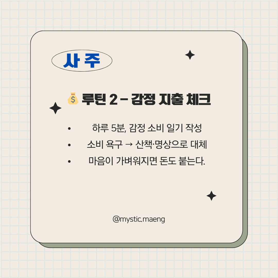 재성운 시기에는 '돈을 모으는 법보다 ‘지키는 루틴’이 핵심입니다.