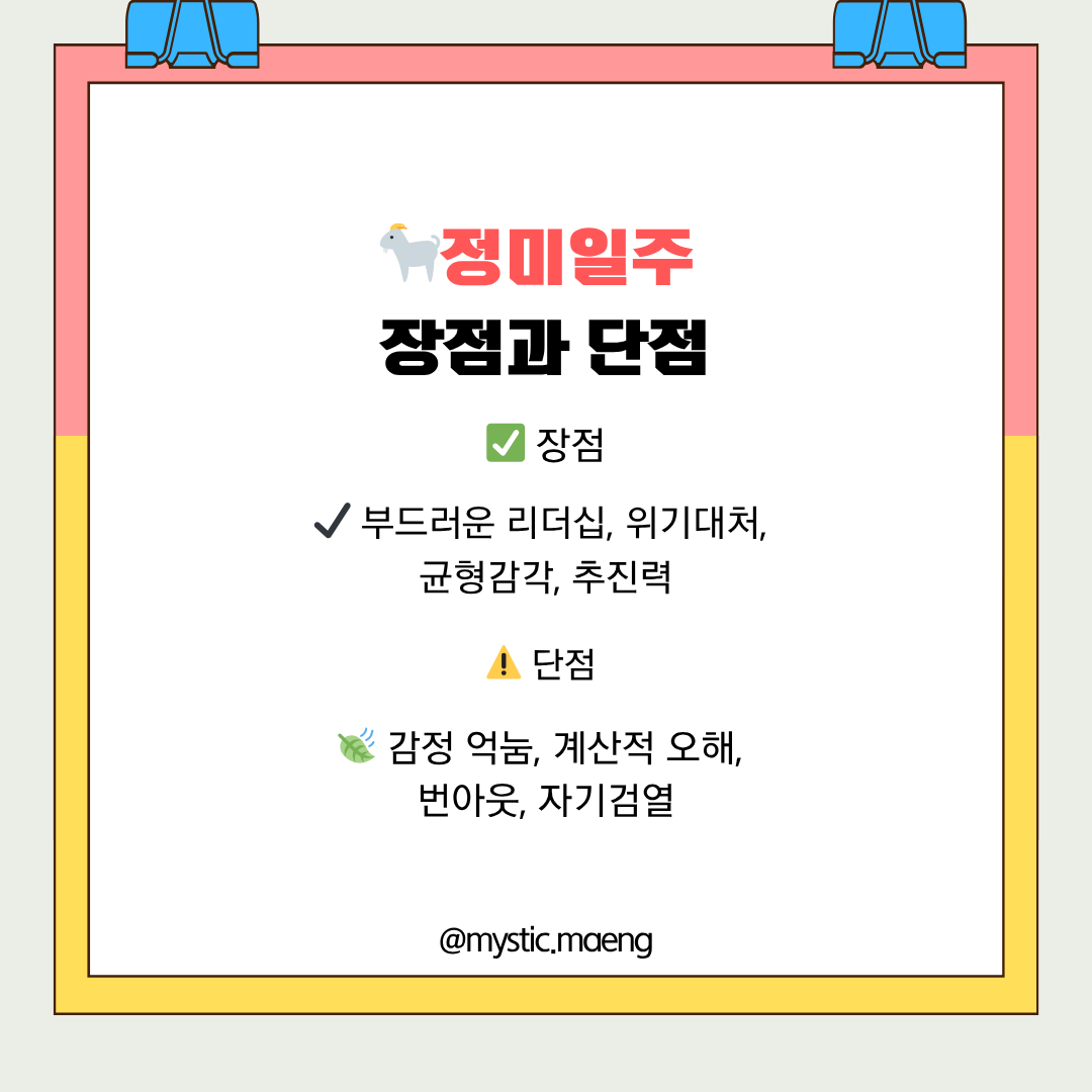 정미일주는 겉은 유연하지만 속은 불타는 현실 조율자.