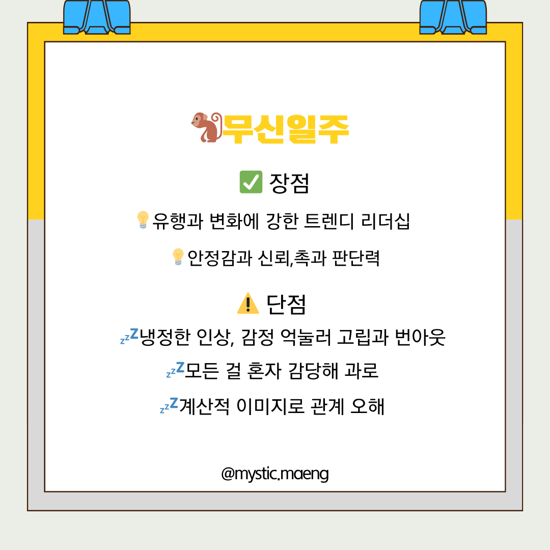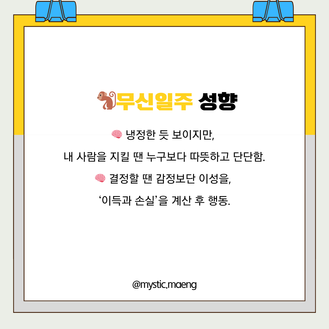 무신일주는 트렌디한 감각과 강한 생존력을 지닌 황금 원숭이예요.