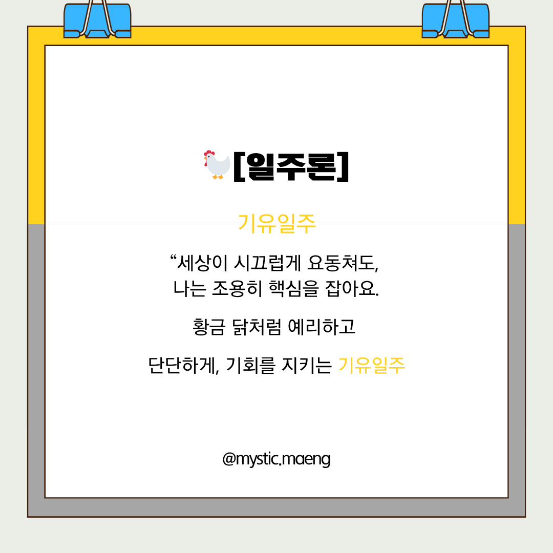 황금 닭처럼 예리하고 단단하게, 기회를 지키는 ‘기유일주’ 🐓.”