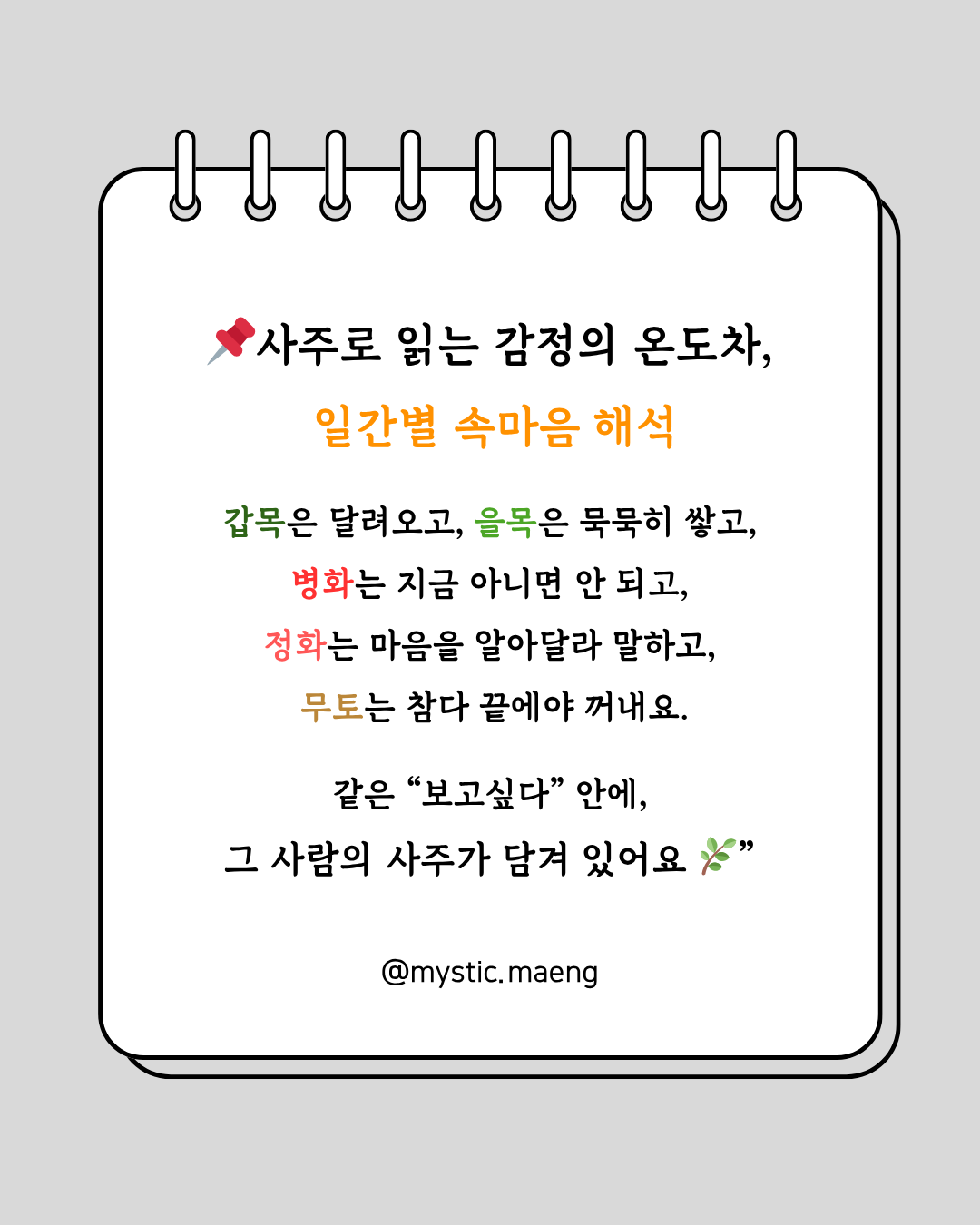 #갑목을목병화정화무토 #맹여신의비밀노트 #감정표현사주