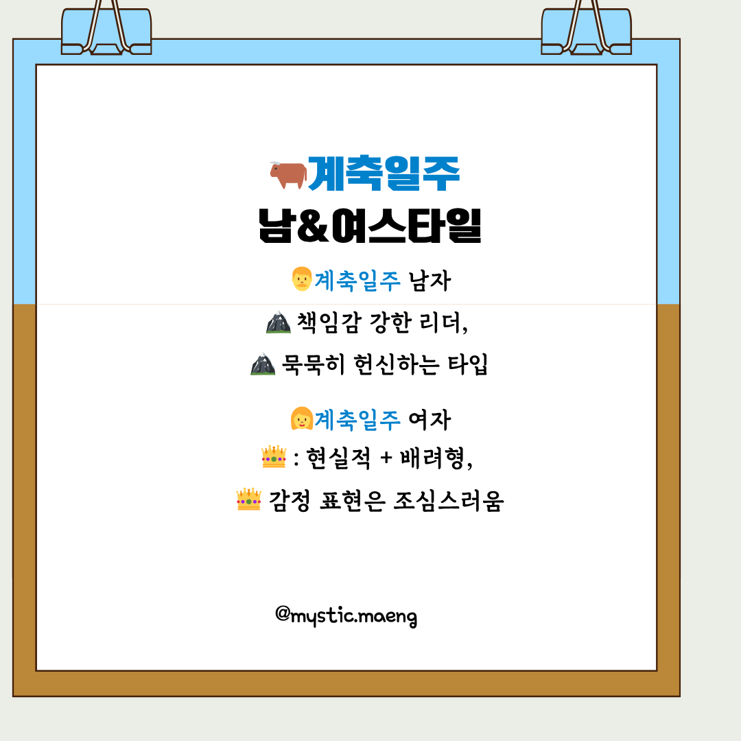 계축일주는 겉은 단단하지만, 속은 따뜻한 사람입니다.