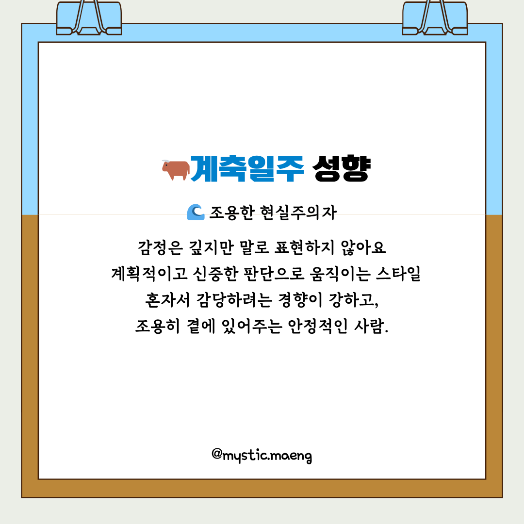 “계축일주는 조용한 듯, 강한 사람입니다.