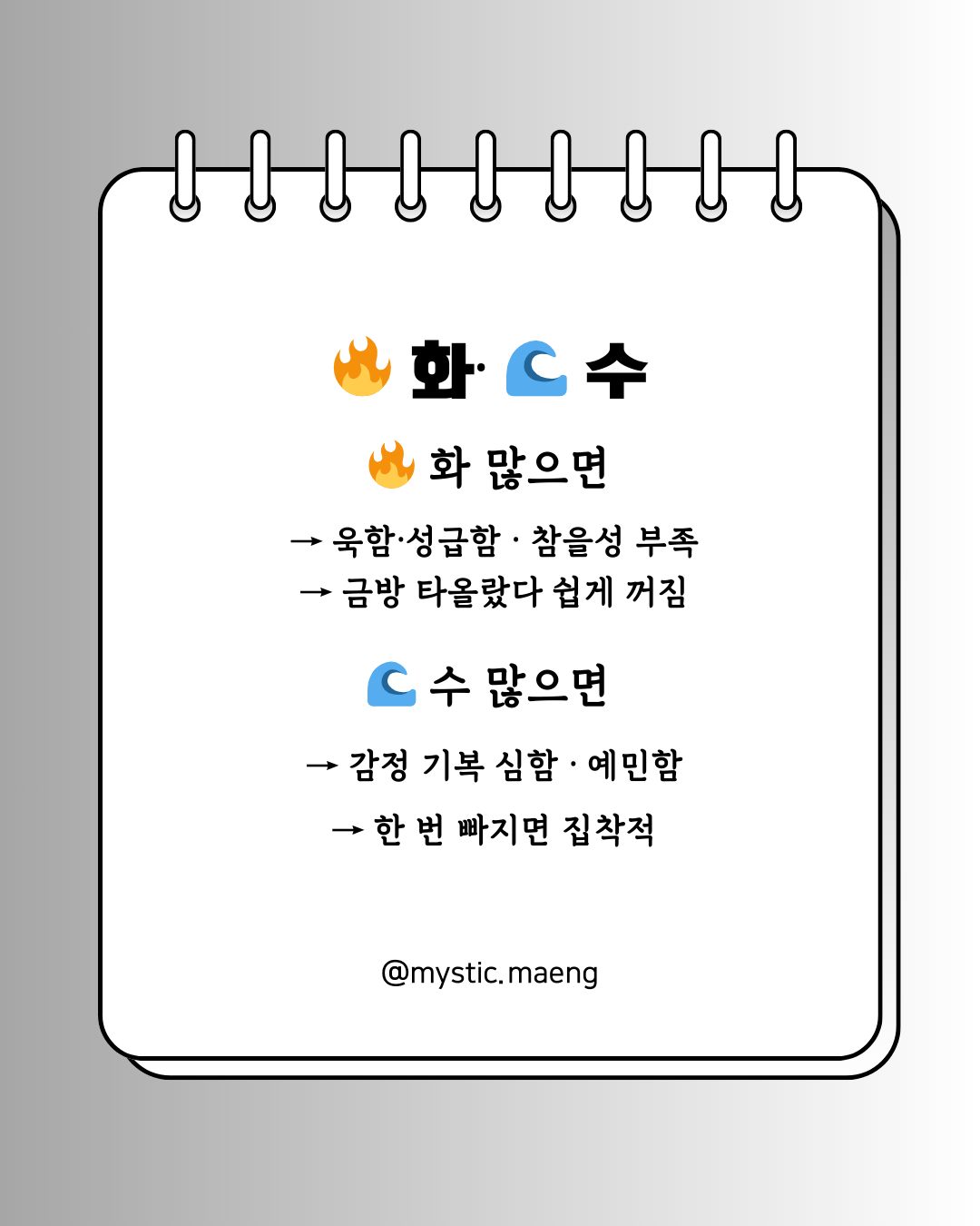 👉 Tip: 수(水)를 다스리려면 ‘루틴·계획표’가 감정의 물결을 잡아줍니다.