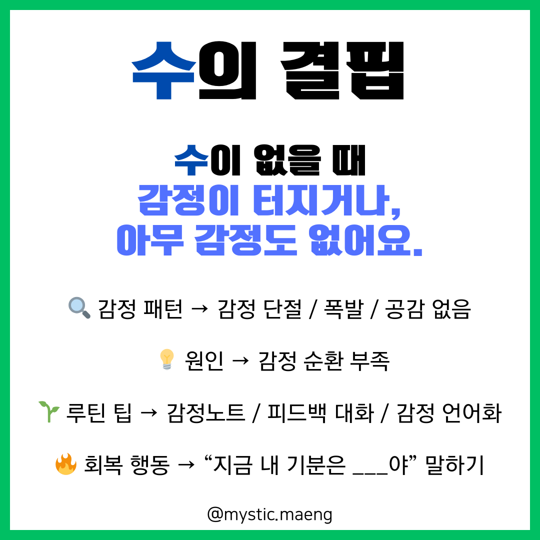 - 기능 결핍: 감정 순환력, 관계 유연함