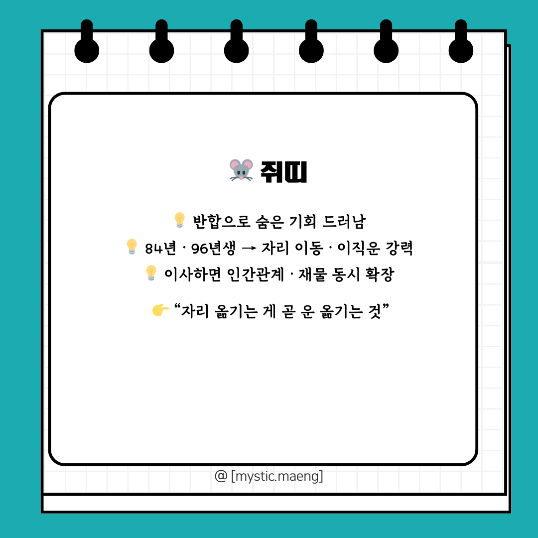 👉 쥐띠는 “자리 옮기는 것이 곧 운을 옮기는 것.”