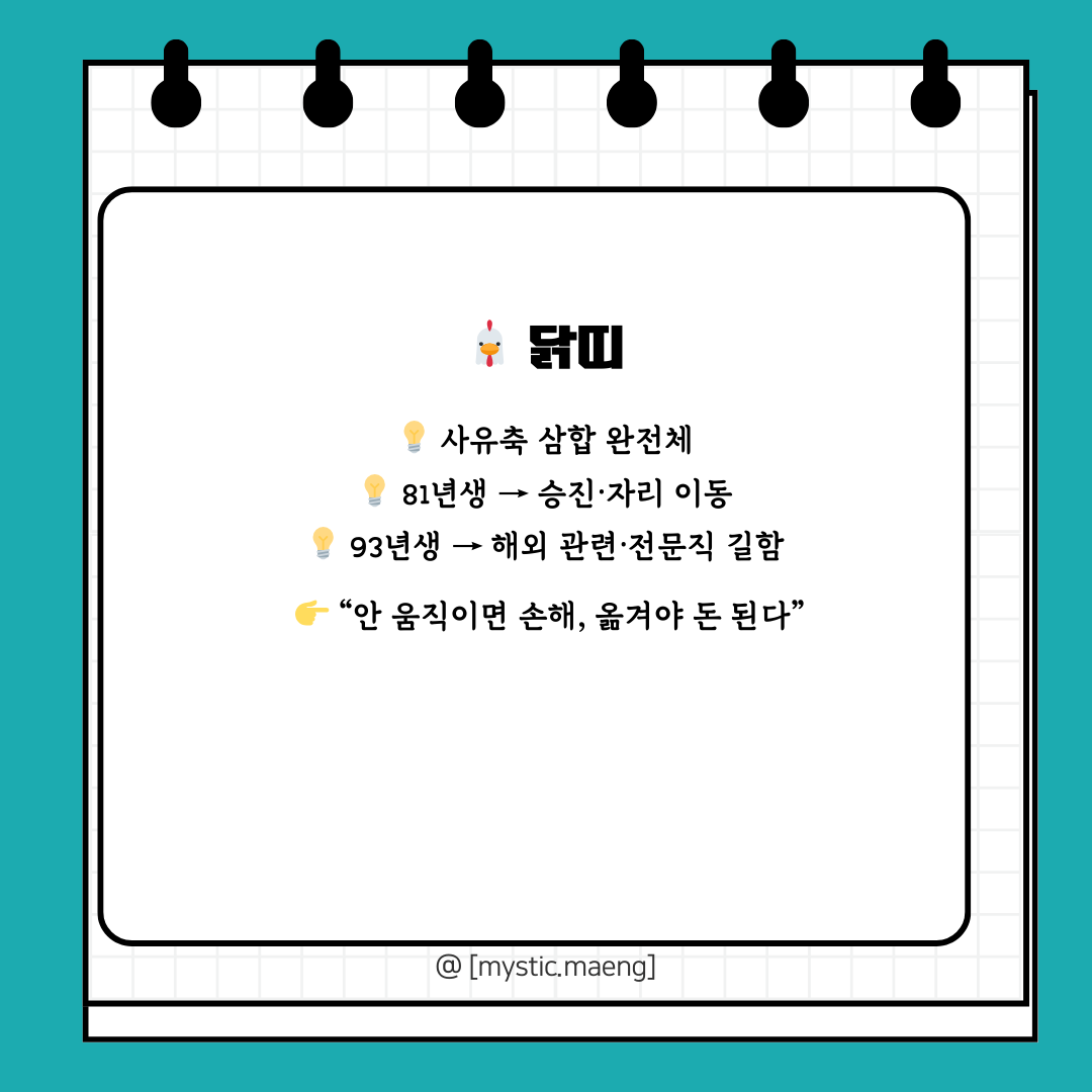 👉 닭띠는 “움직이지 않으면 손해, 옮겨야 돈이 되는 해.”