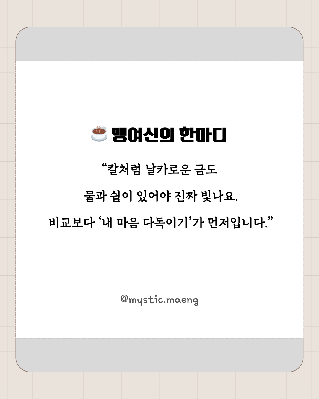 💬 맹여신 한마디