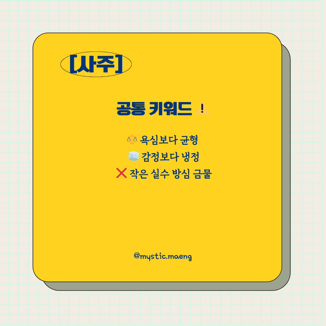 👉 조언: “중심을 지키는 사람이 끝까지 갑니다.”