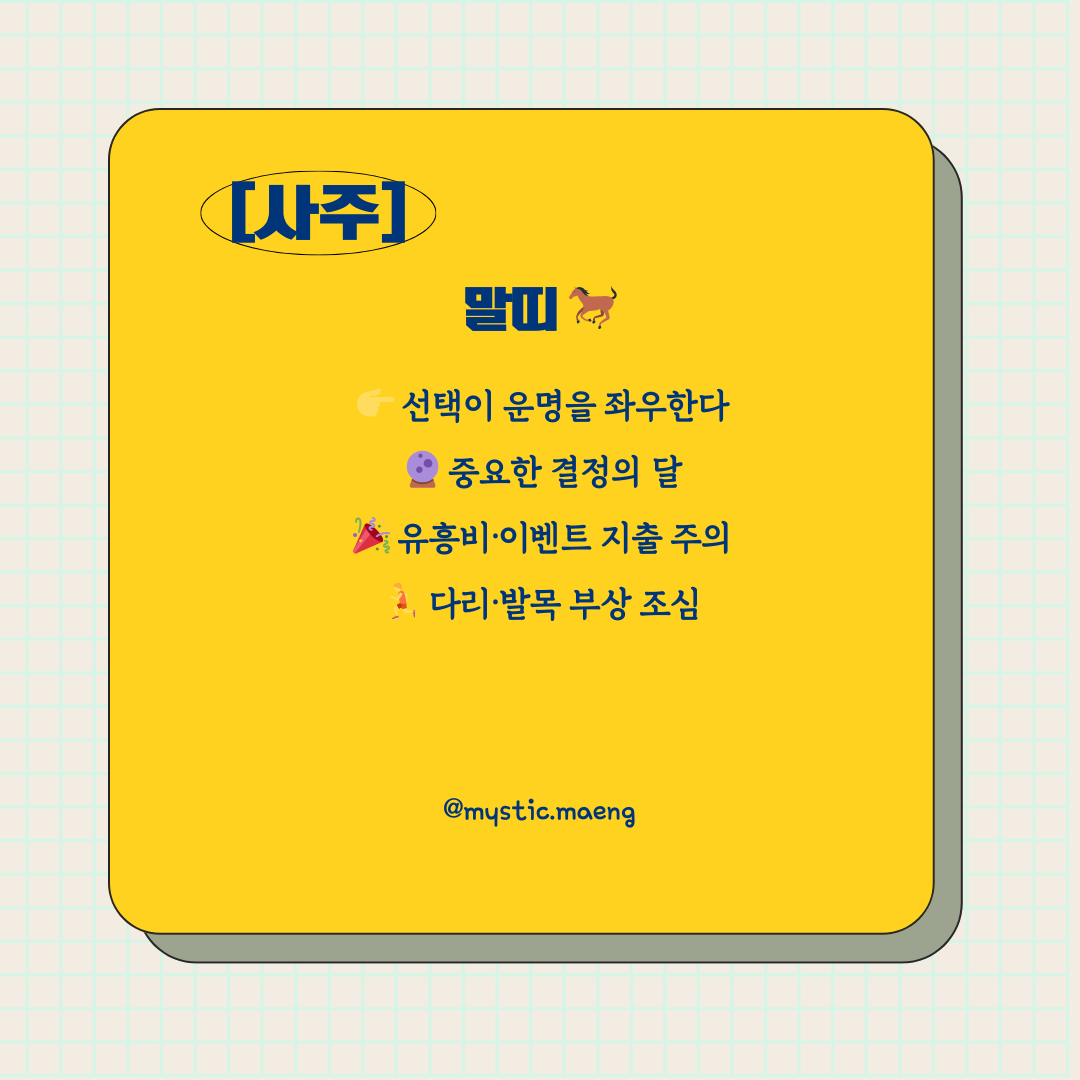 - 말띠 → 중요한 선택, 유흥비·건강 주의