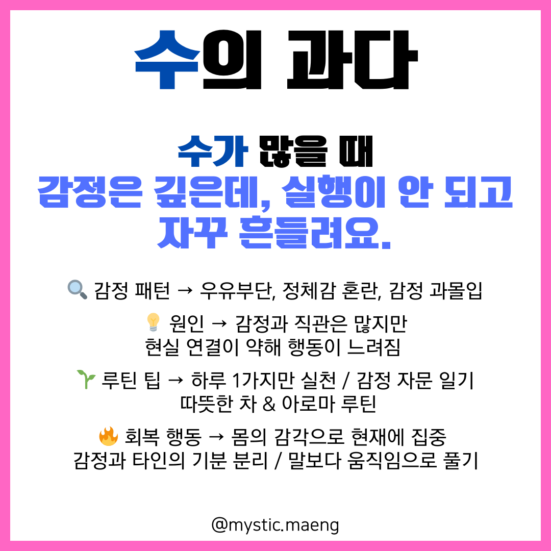 그 위에 수기운이 과도하게 많다 보니, 감정은 풍부한데 현실에서 방향을 잡기가 어려운 구조예요.
