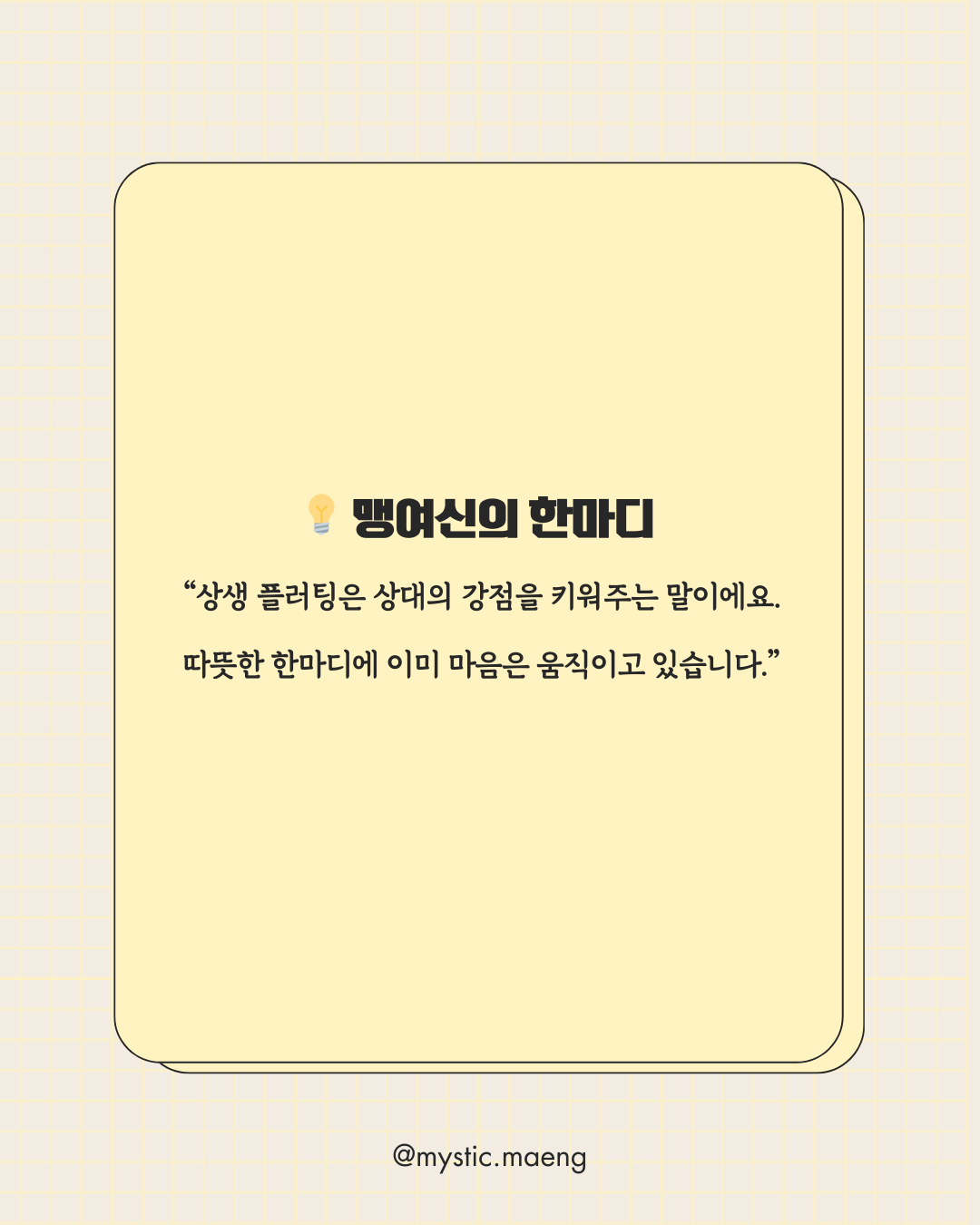 “상생 플러팅은 상대의 강점을 더 크게 키워주는 말이에요.