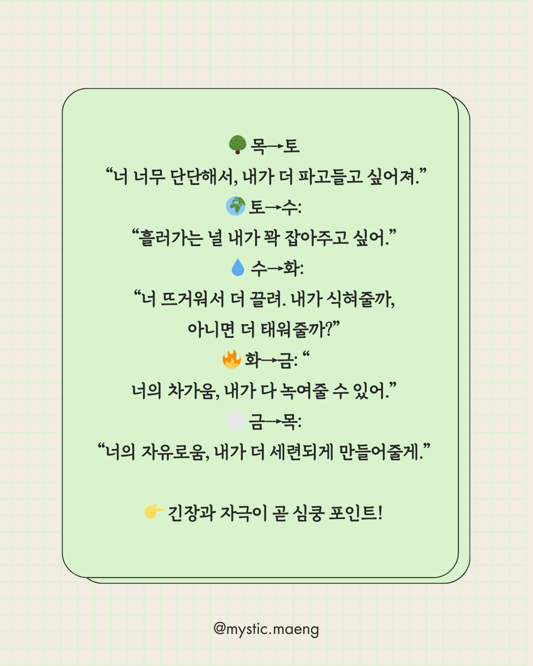 | 💎 [사주]오행 궁합 플러팅 전략 – 상생 편 (0) | 2025.09.09 |