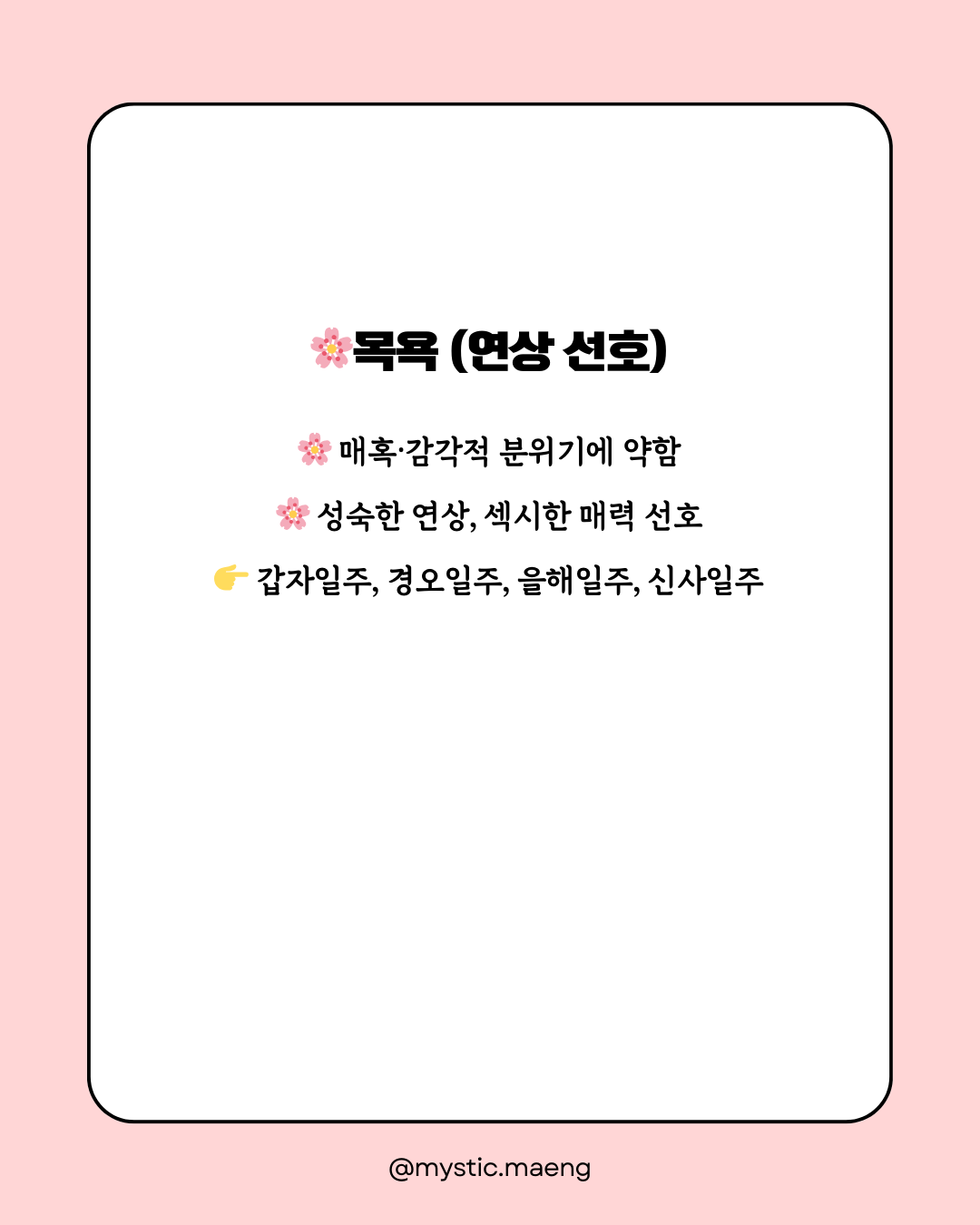 🌸 목욕(沐浴) – 매혹적이고 감각적인 사랑 (연상 선호)