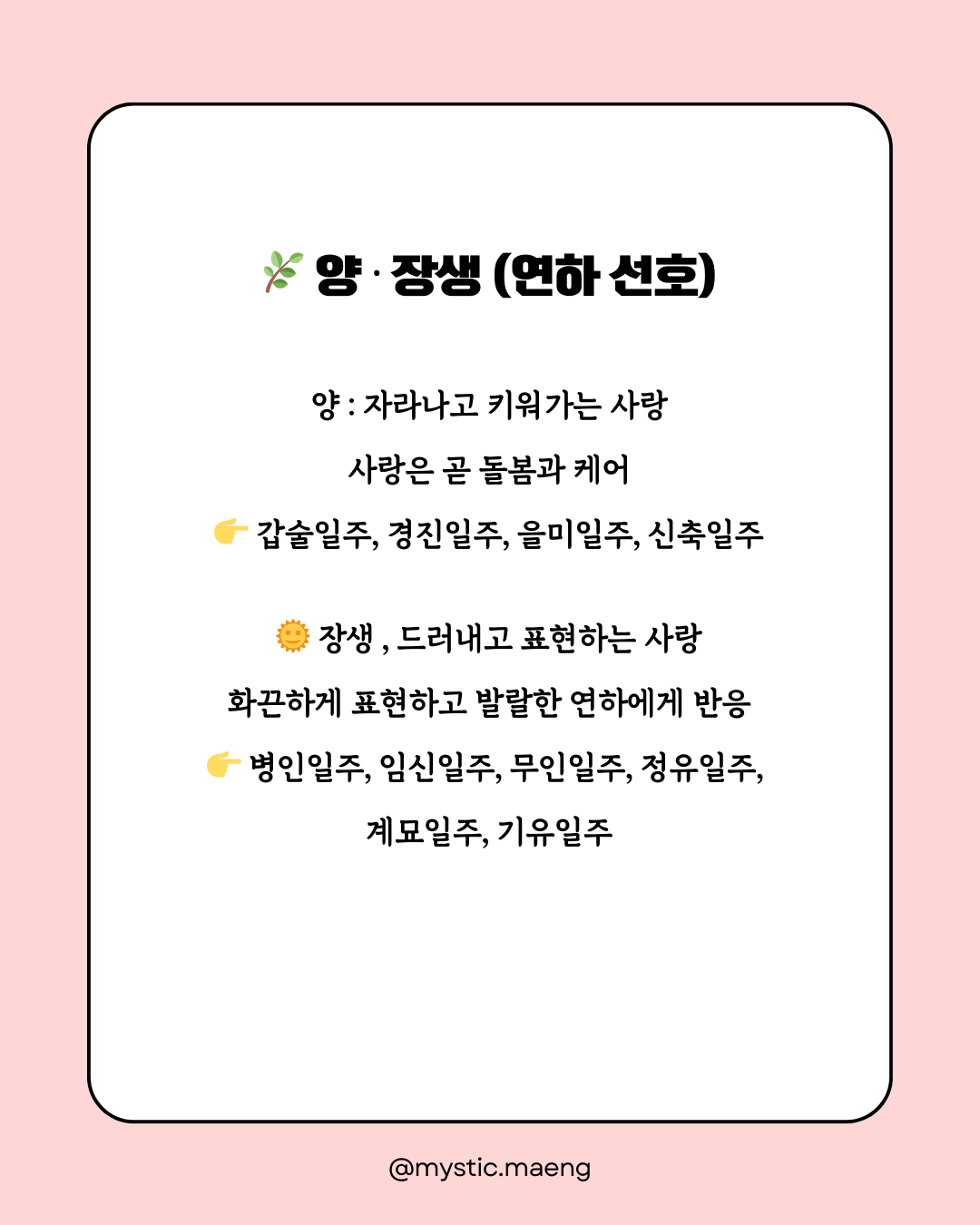 👉 결국, 내 십이운성이 어느 단계냐에 따라 내가 끌리는 연애 패턴이 달라진다는 것!