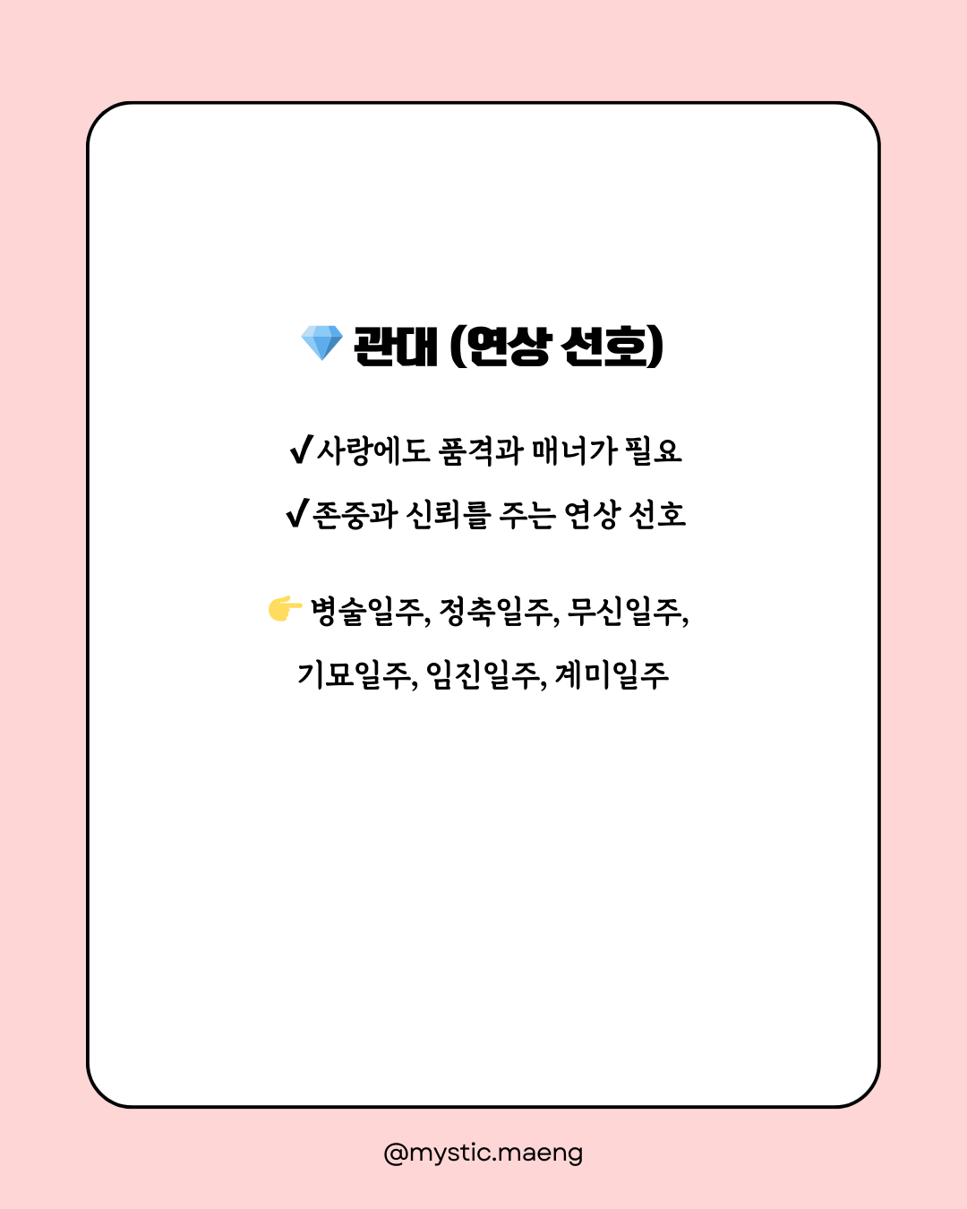 💎 관대(冠帶) – 당당하고 이상적인 사랑