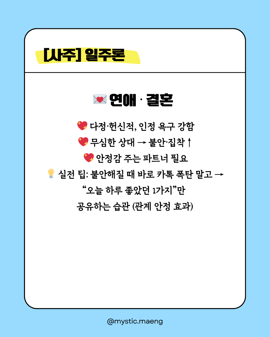 💡 연애 팁: 정해일주는 ‘안정감’이 필수입니다.