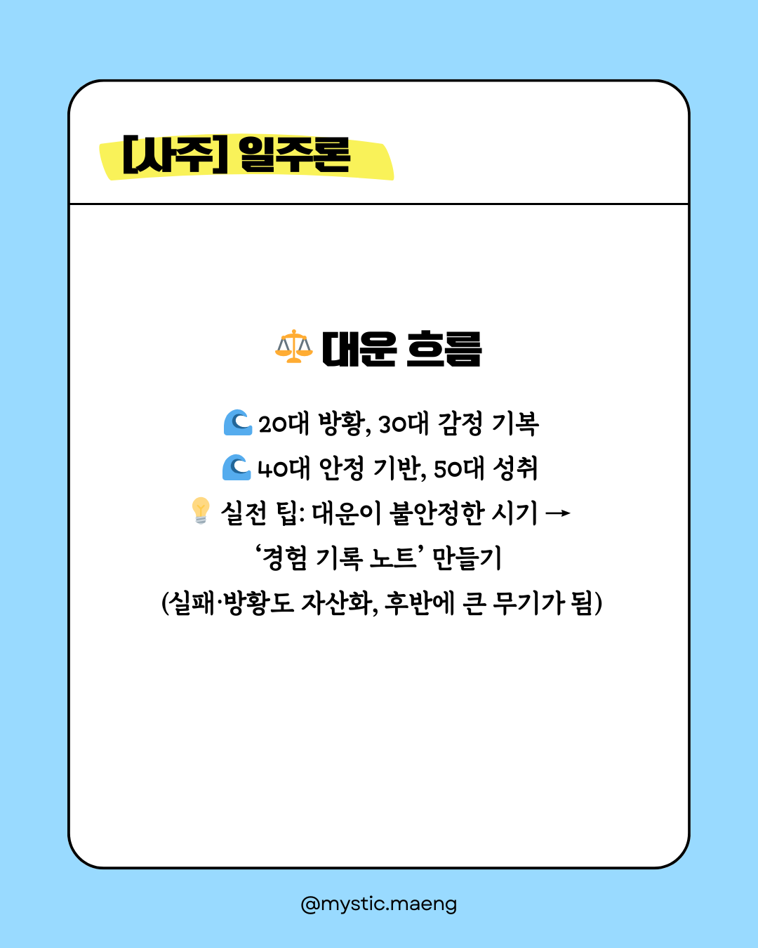 4️⃣ 대운 흐름 ⚖️ – “초반 불안, 후반 안정”