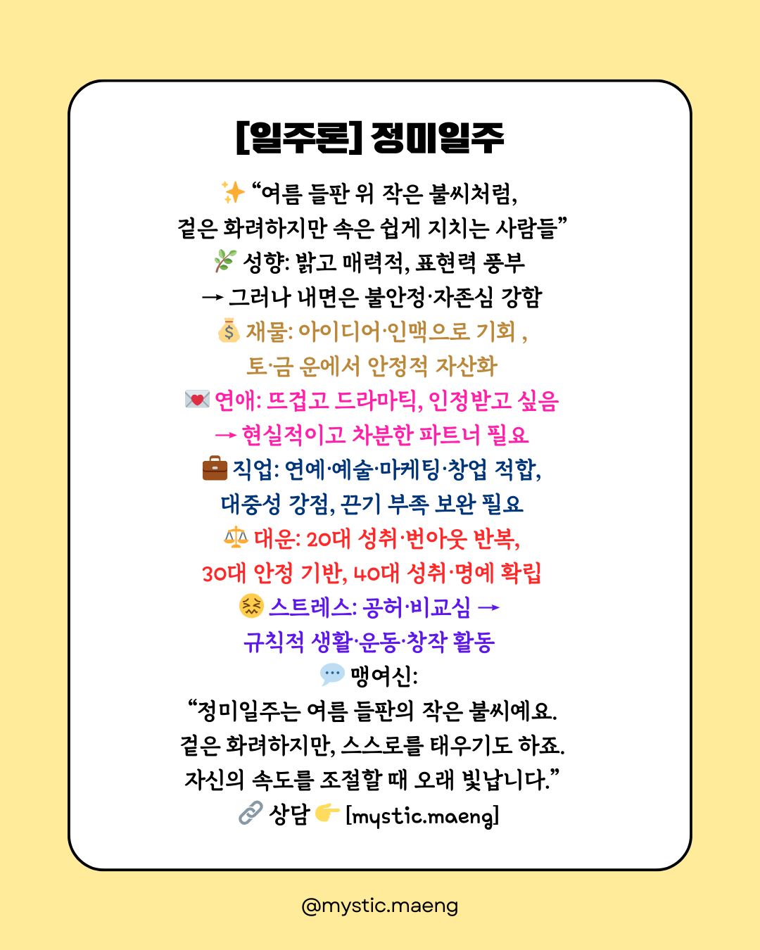 💡 직업 팁: 정미일주는 “지속성”이 성공을 좌우합니다.