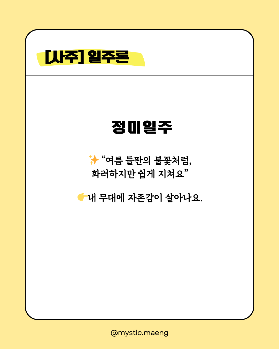 💡 연애 팁: 정미일주는 “속도 조절”이 필요합니다.