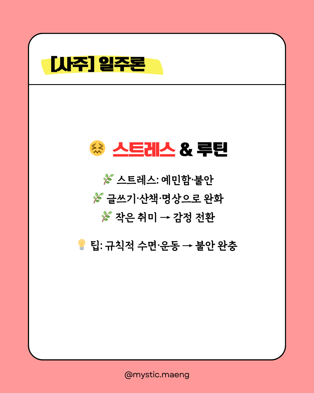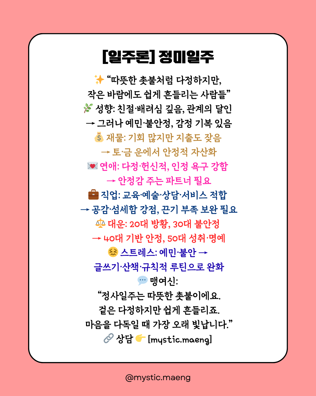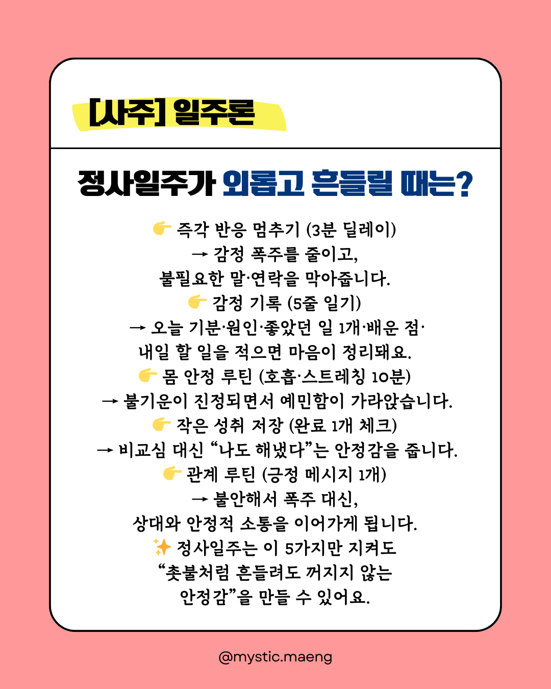 💡 루틴 팁: 정사일주는 “작은 습관”이 안정감을 줍니다.