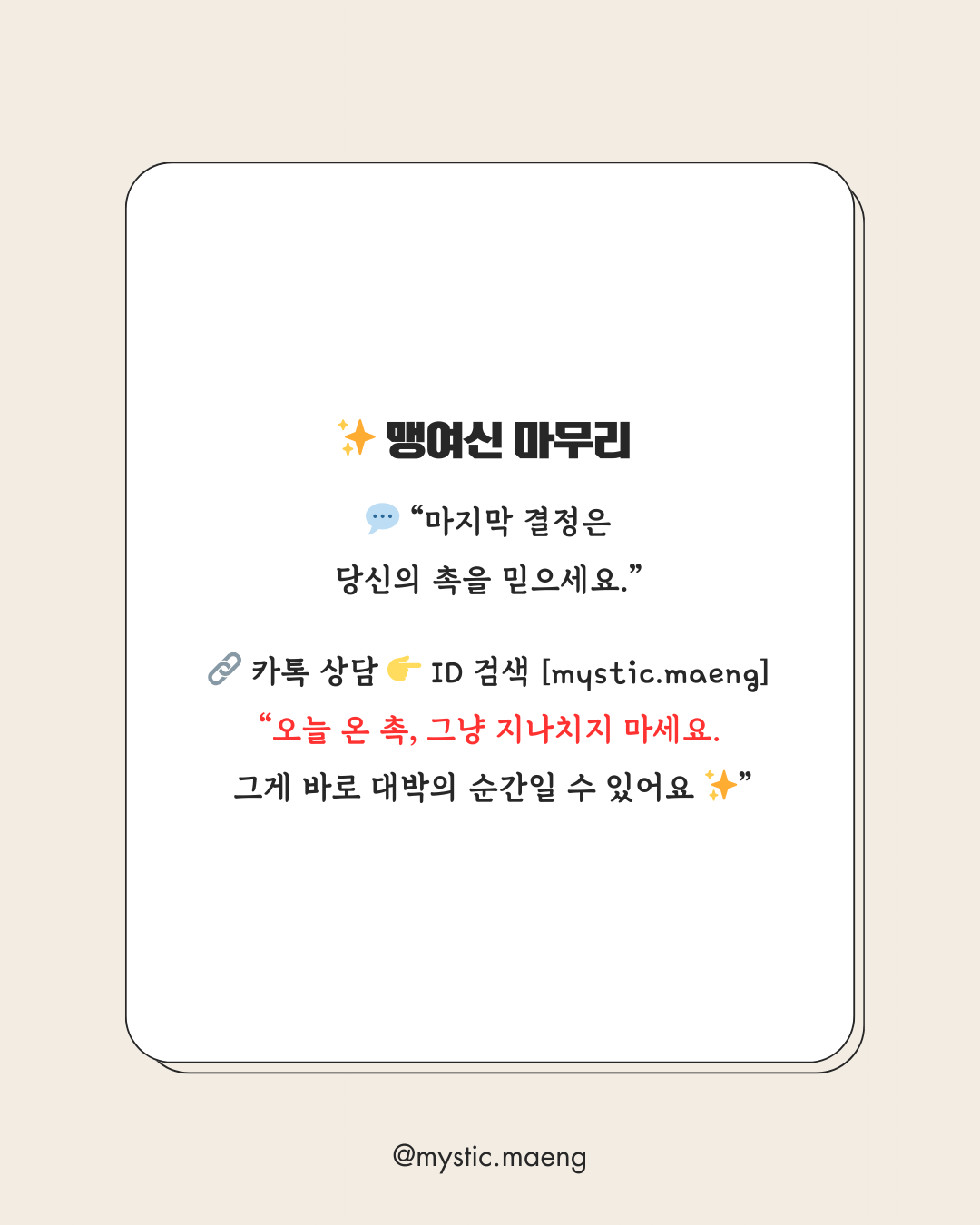 🔗 카카오톡 상담 바로가기 👉 ID 검색 [mystic.maeng]