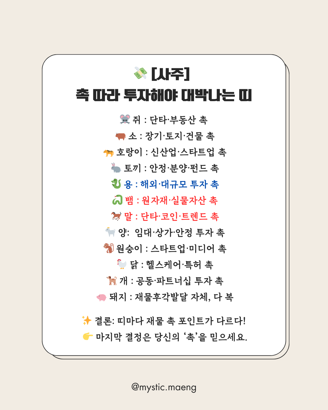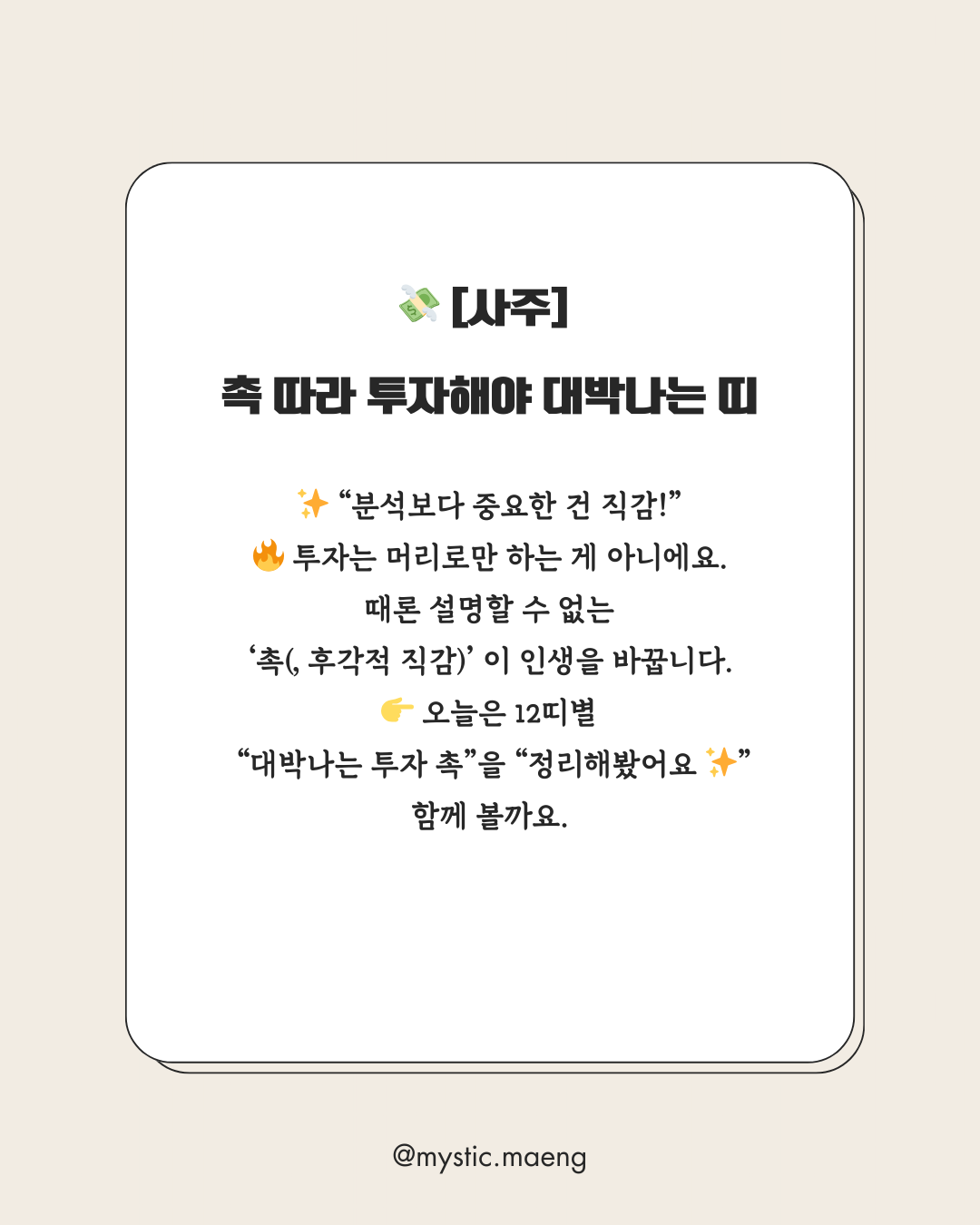 오늘은 12띠별로 “촉 따라 투자해야 대박나는 순간”을 “정리해봤어요 ✨”