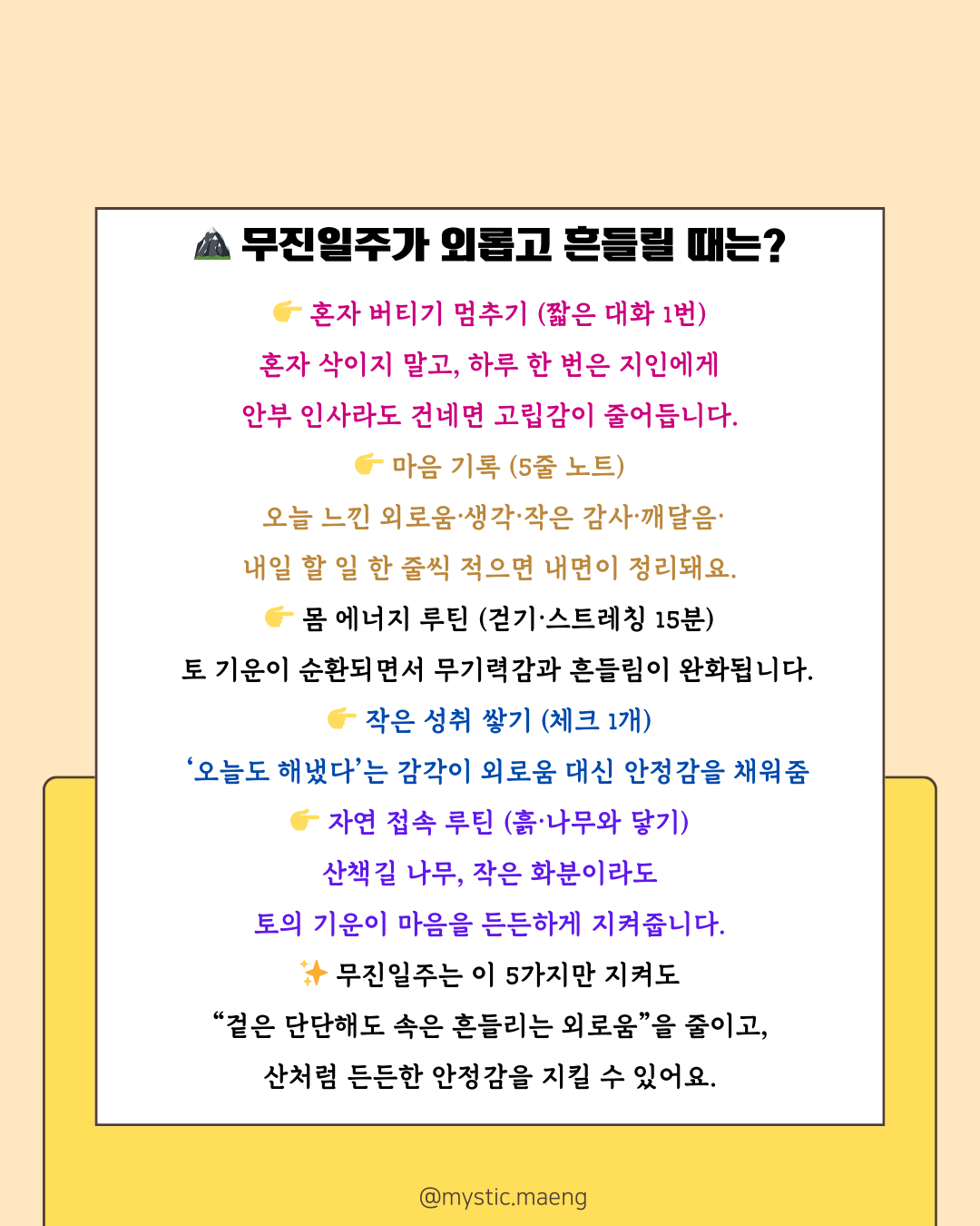 💡 루틴 팁: 무진일주는 “외로움을 줄이는 연결”이 해답입니다.