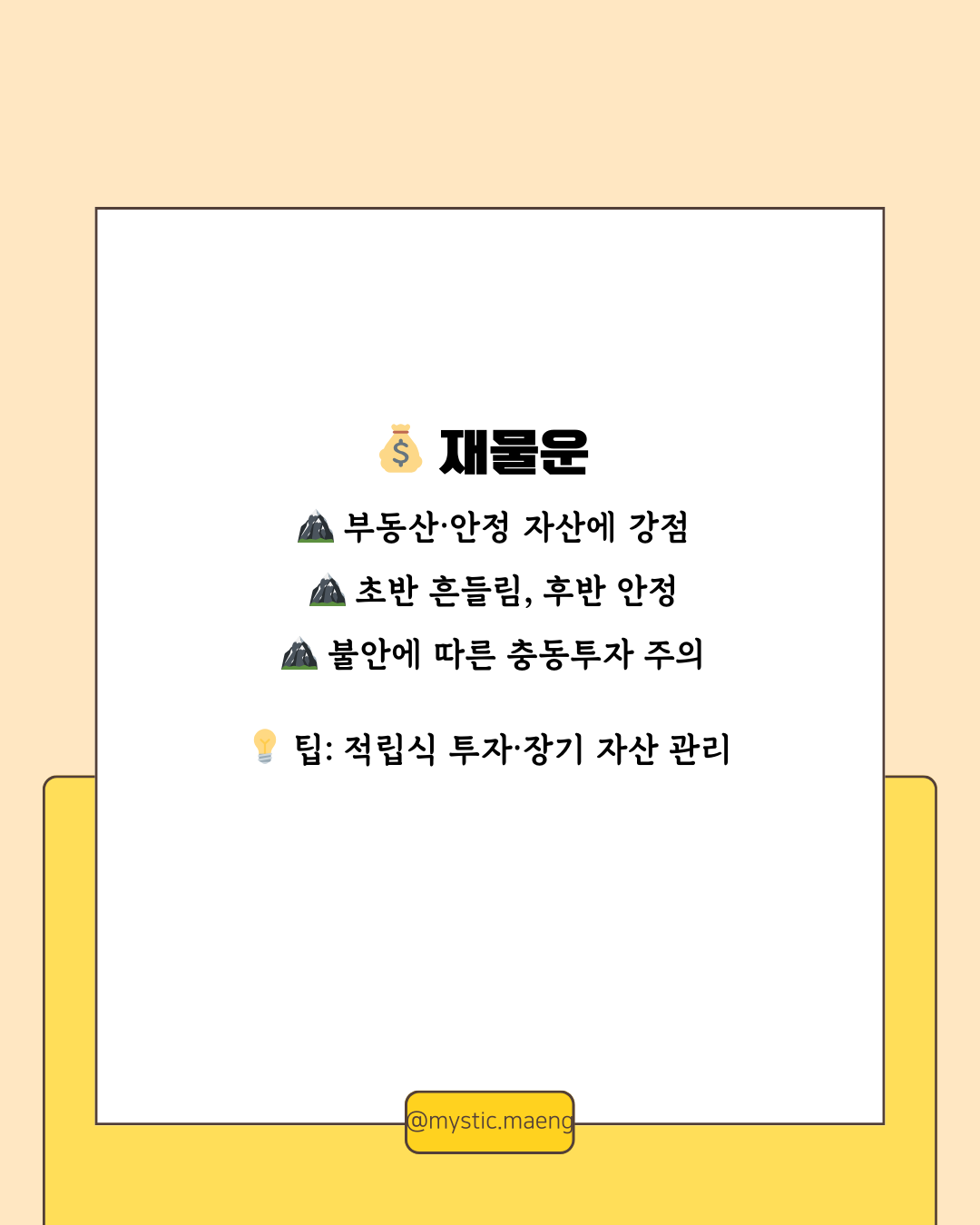 1️⃣ 재물운 💰 – “버티는 힘이 돈이 된다”