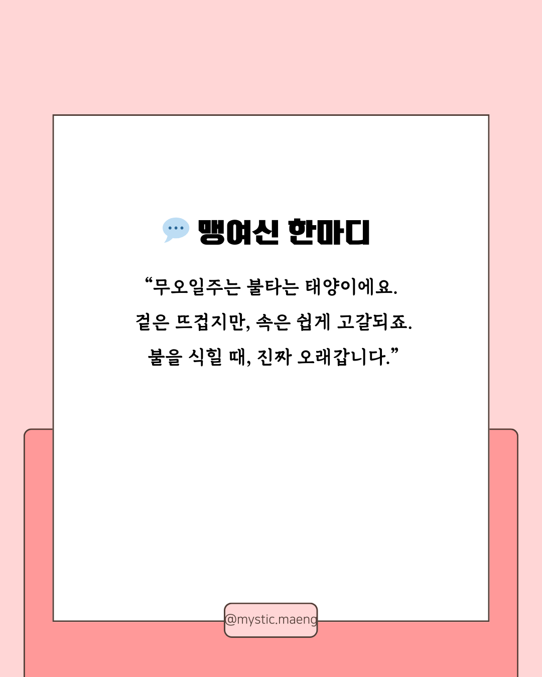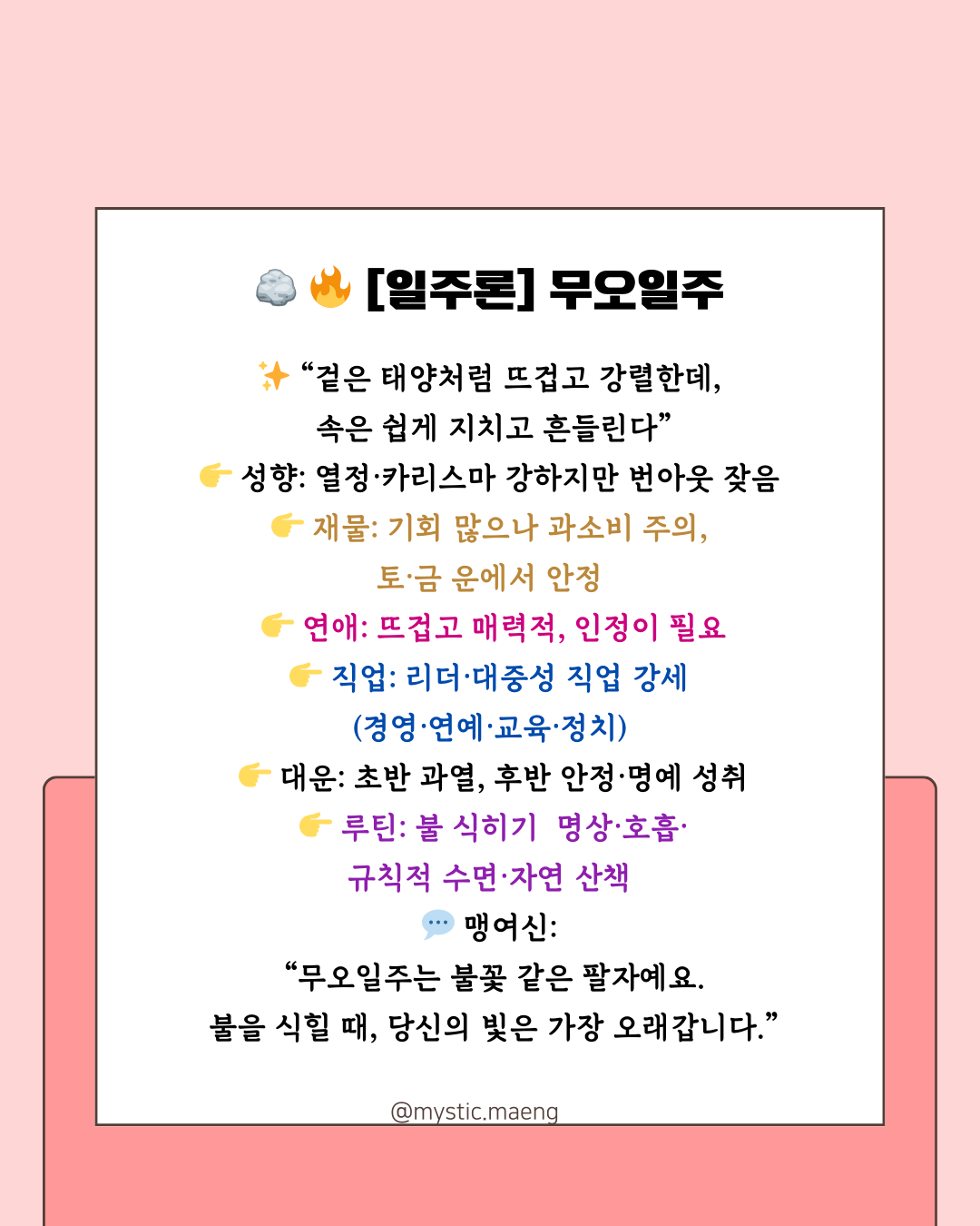 #무오일주 #일주론 #사주명리 #사주팔자 #명리학 #운세상담 #재물운 #연애운 #삶의방향 #맹여신비밀노트