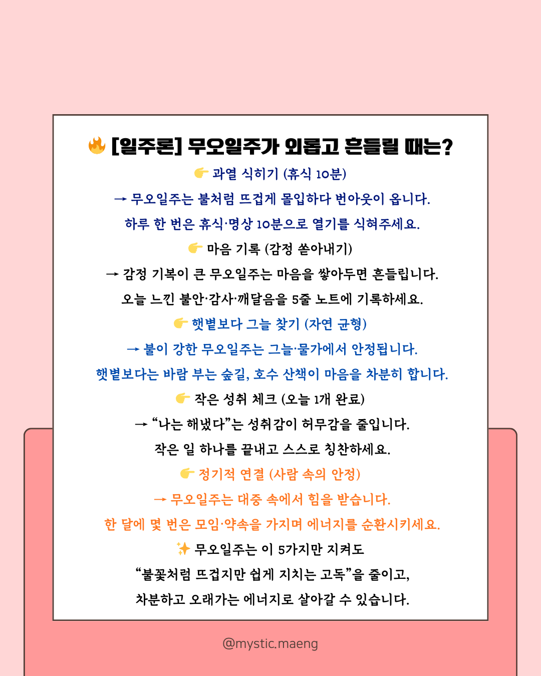 5️⃣ 무오일주스트레스 요인 & 관리 루틴 😖 – “지치고 흔들릴 때”