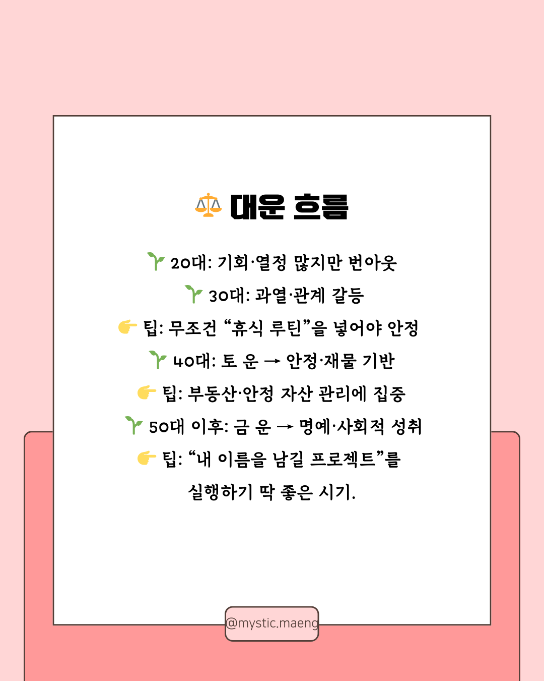 💡 대운 팁: 무오일주는 “후반 안정형”입니다.