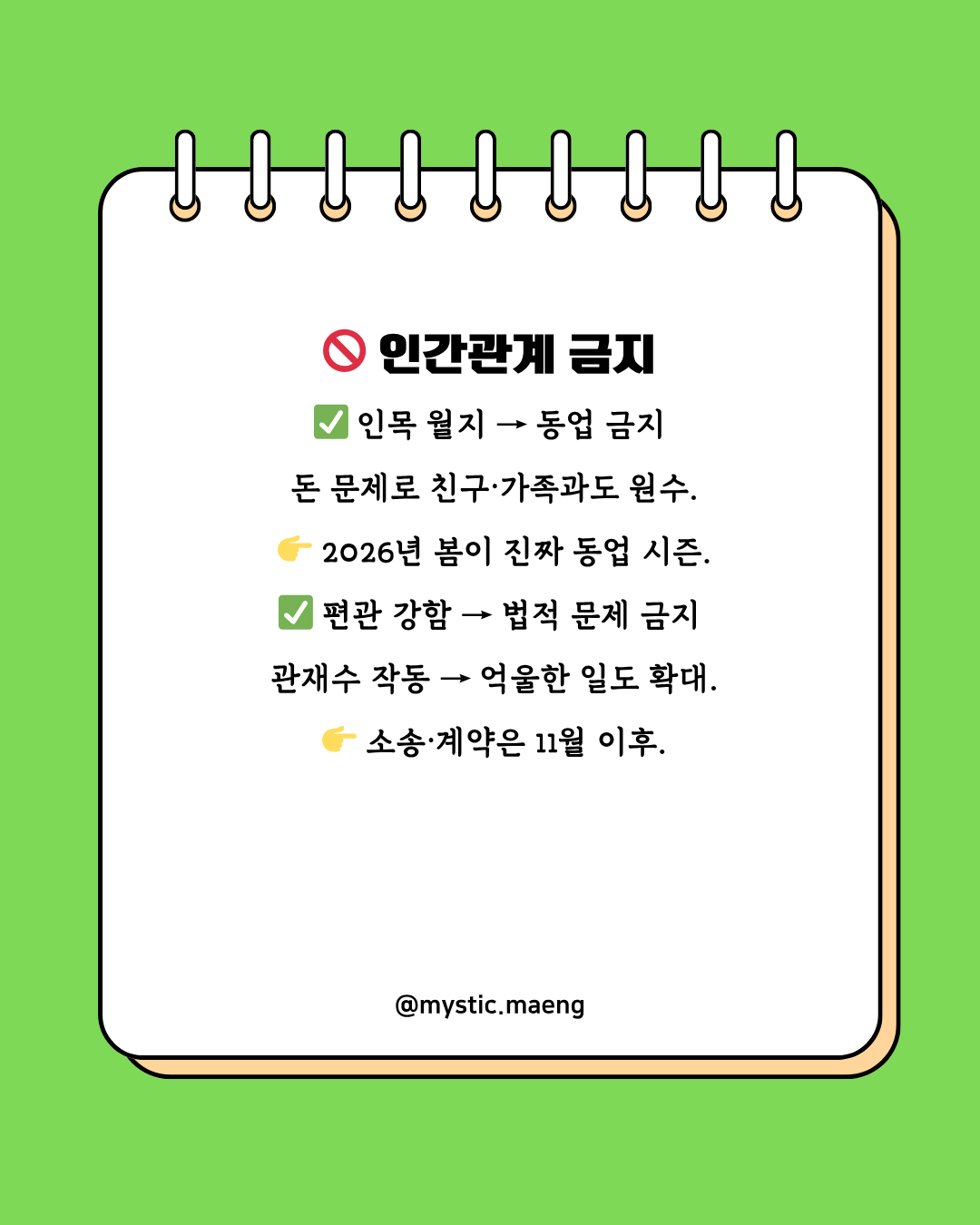 👉 돈·일·연애·집 전부 꼬이고 후회로 돌아와요.