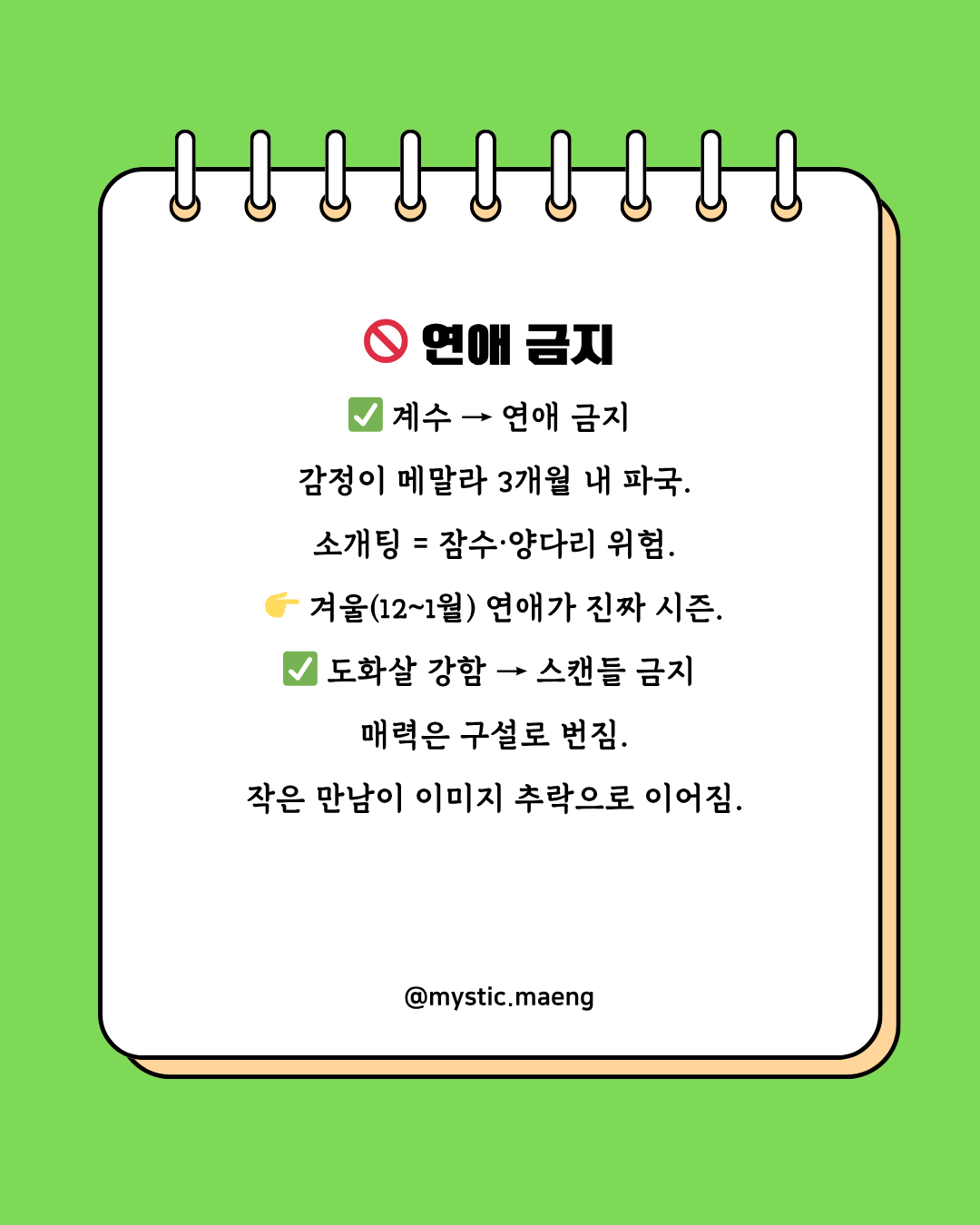 👉 겨울(12~1월)이 계수의 진짜 연애 시즌.