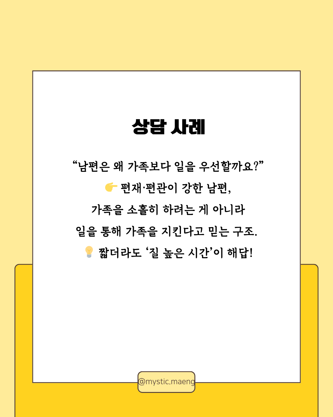 💡 상담 사례 – “남편은 왜 가족보다 일을 우선할까요?”