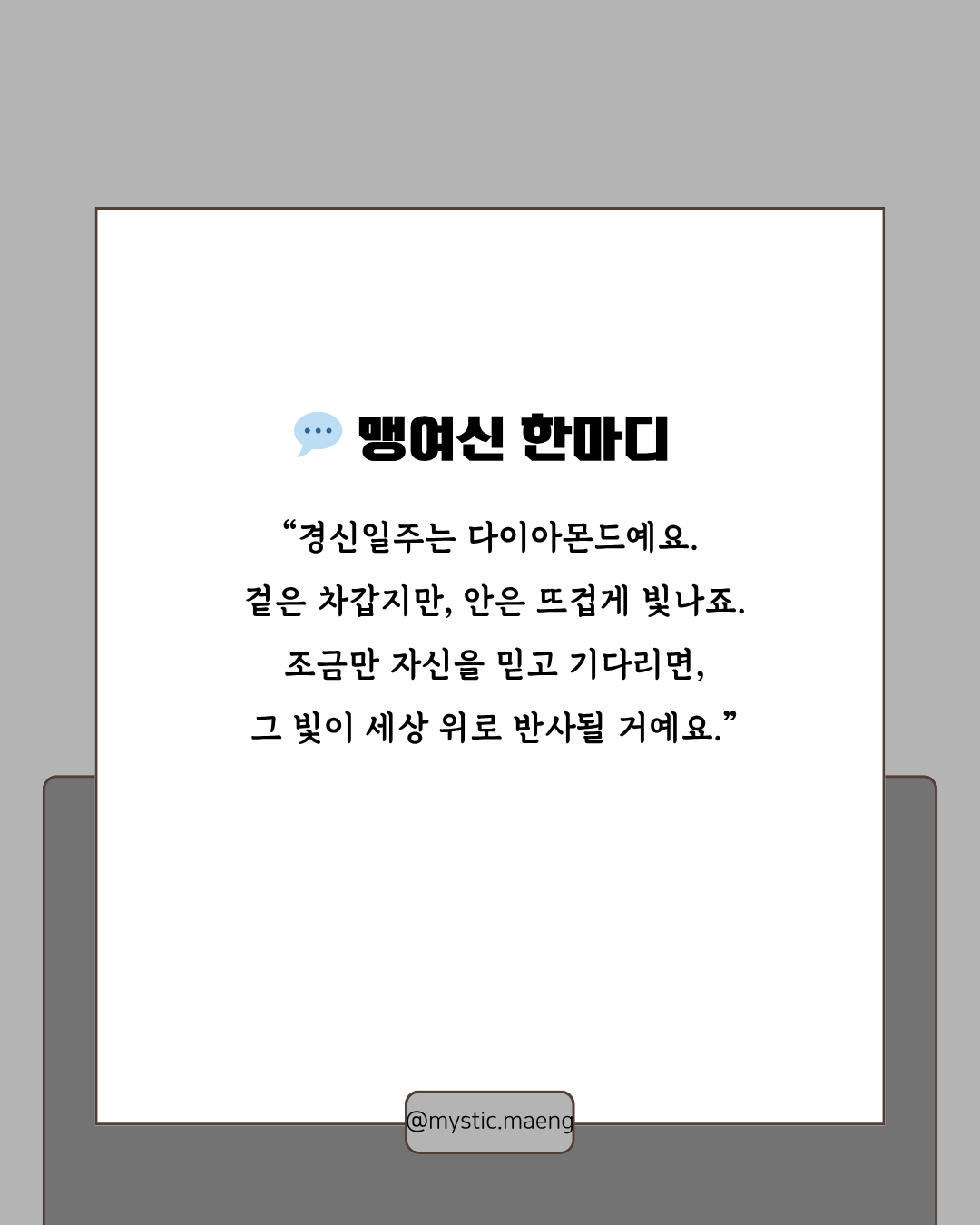 💬 맹여신 한마디