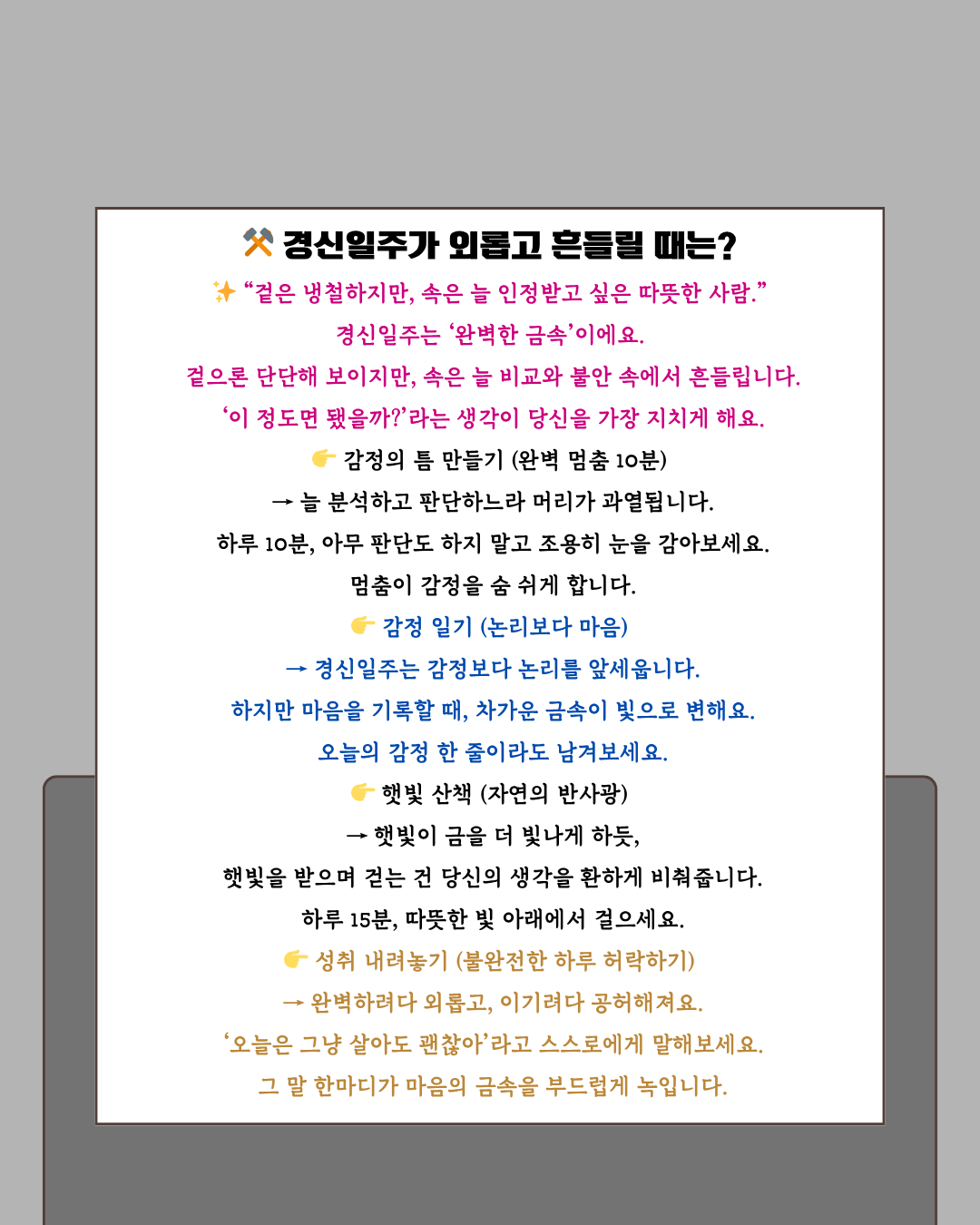 ✨ 경신일주는 “결과로 말하는 사람”이에요.
