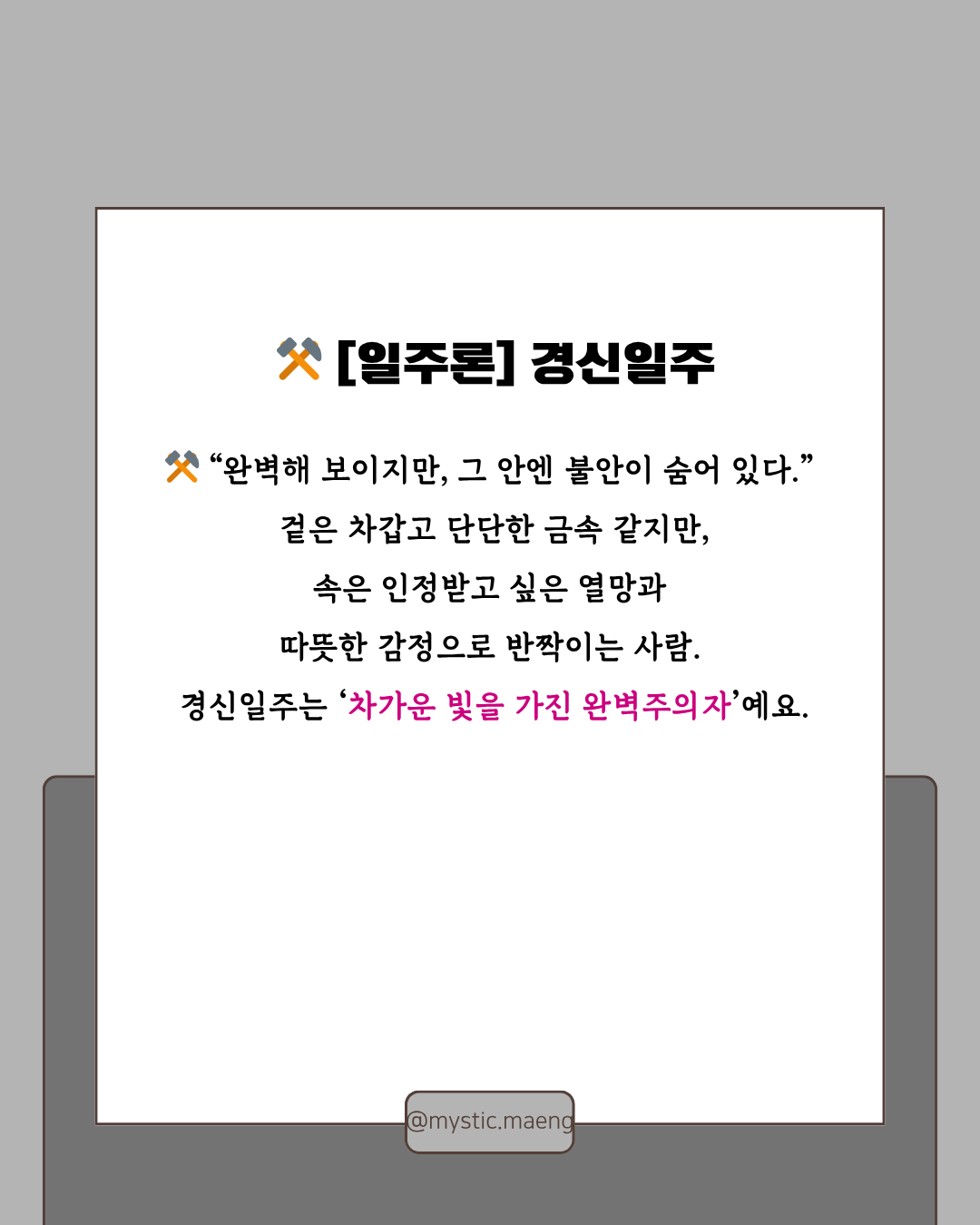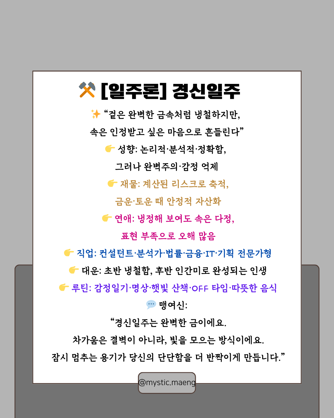 경신일주는 “완벽함으로 신뢰를 쌓는 사람”이에요.