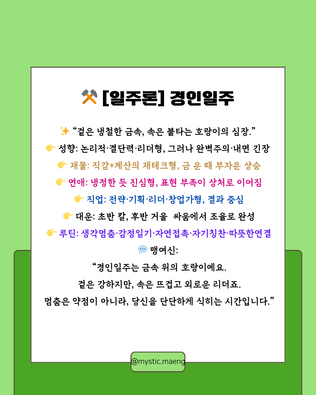 ✨ “경인일주는 완벽하지 않아도 강합니다.