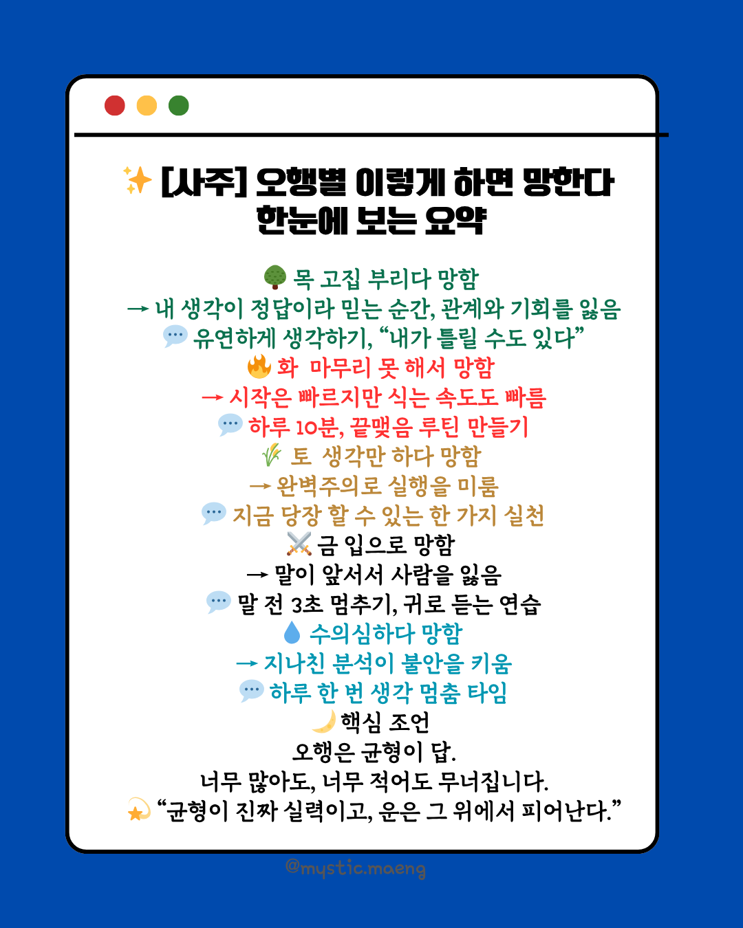 오행은 결국 나를 성장시키는 도구이자, 나를 시험하는 미로예요.