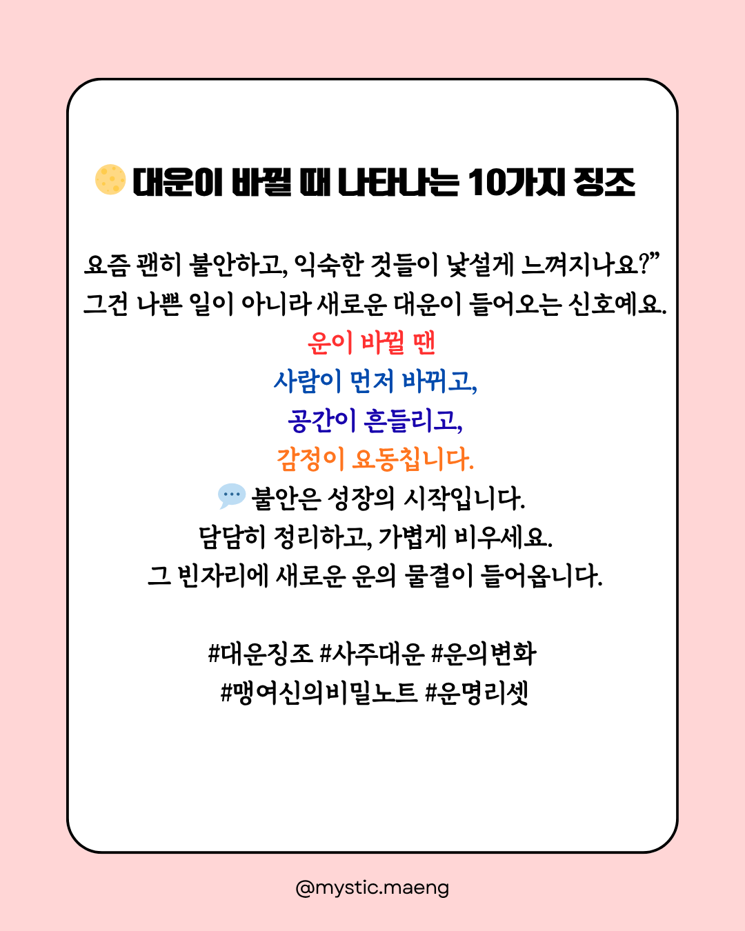 이건 ‘운이 끊긴 게 아니라, 새로운 에너지로 교체 중’이라는 신호예요.
