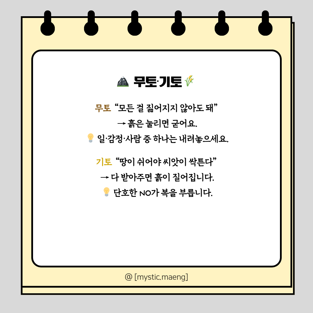 6️⃣ 기토일간 – “땅이 쉬어야 씨앗이 싹튼다”