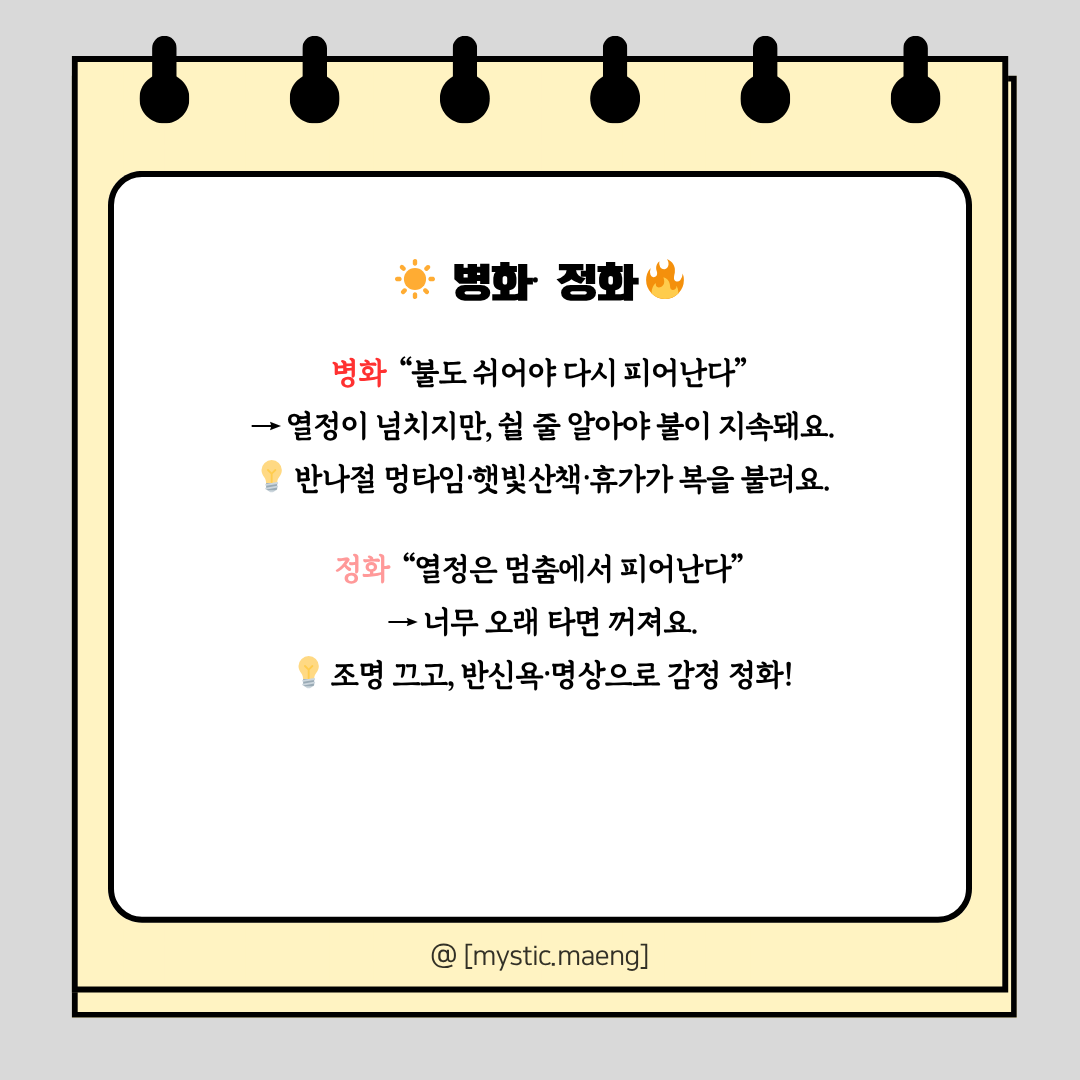 3️⃣ 병화일간 – “불도 쉬어야 다시 피어난다”