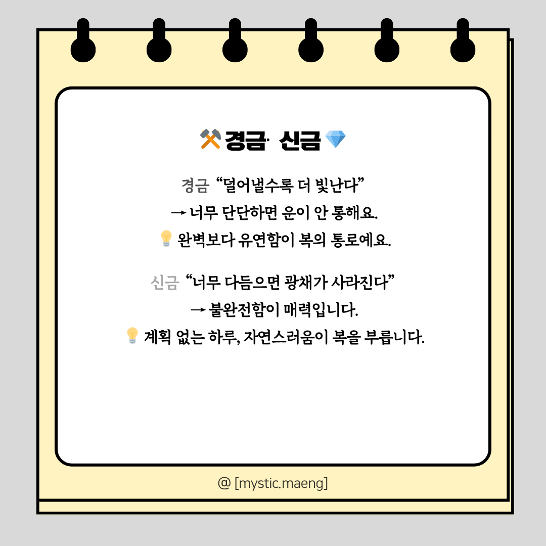 7️⃣ 경금일간 – “덜어낼수록 더 빛난다”