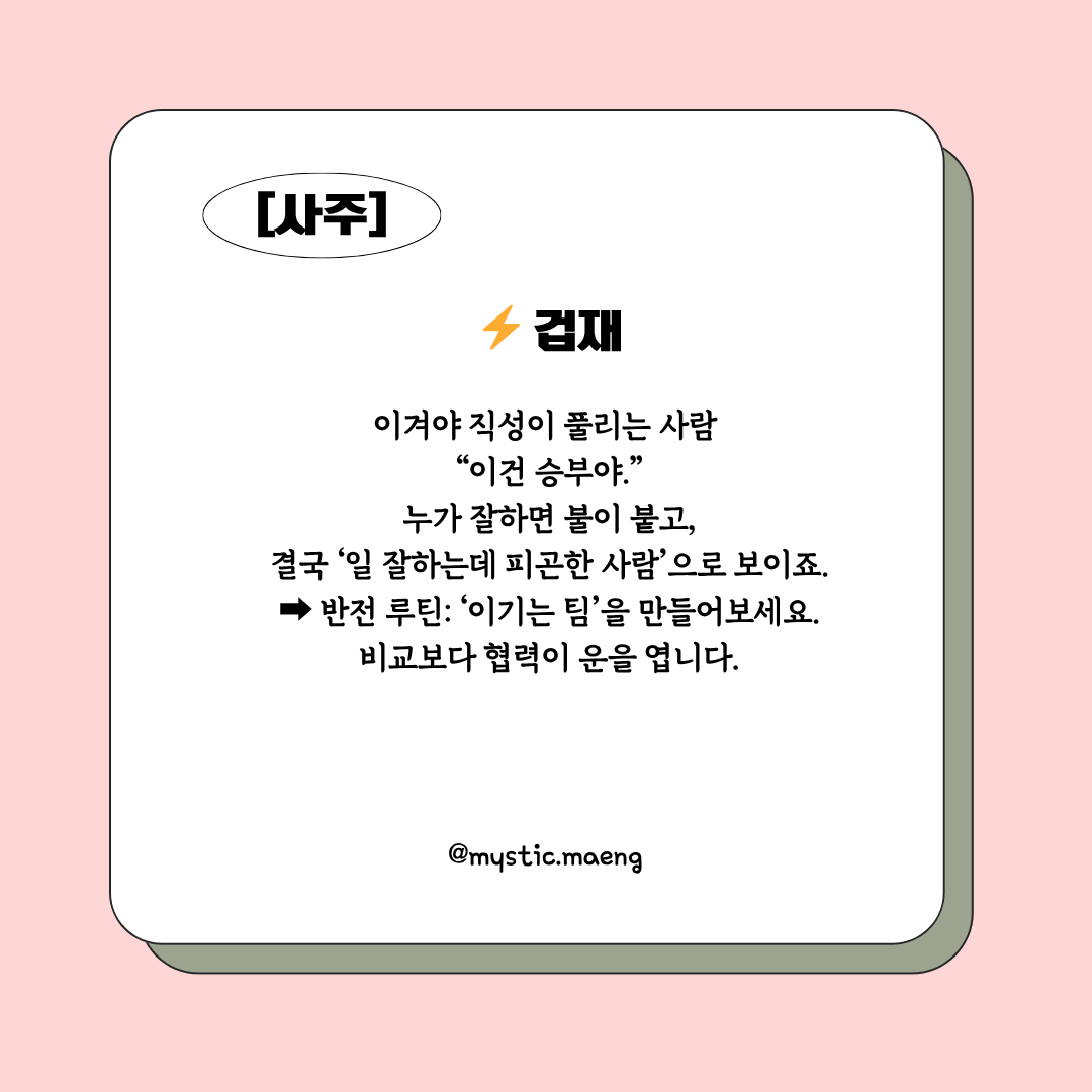 겁재가 강한 사람은 경쟁심이 곧 생존이에요.