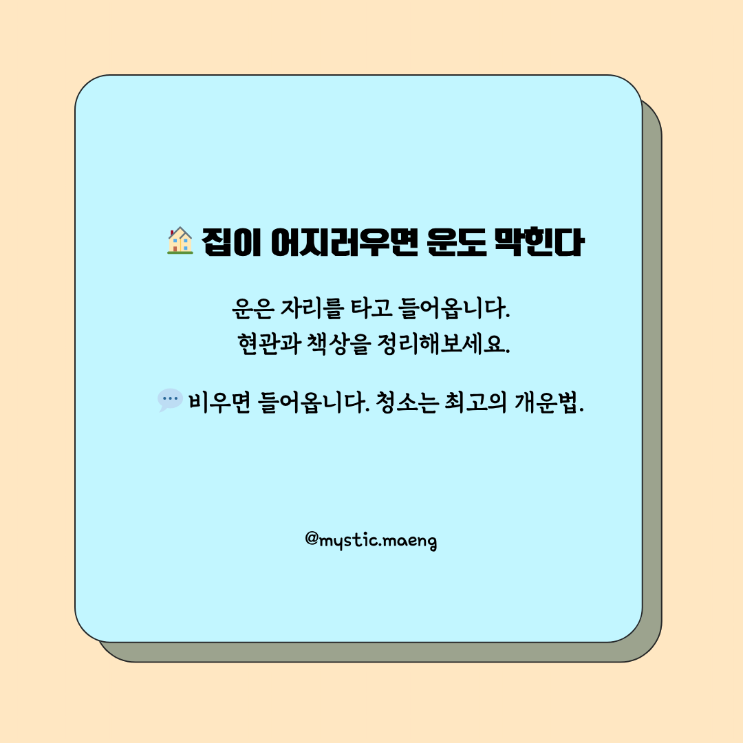 4️⃣ 집이 어지러우면 운도 머무르지 못한다