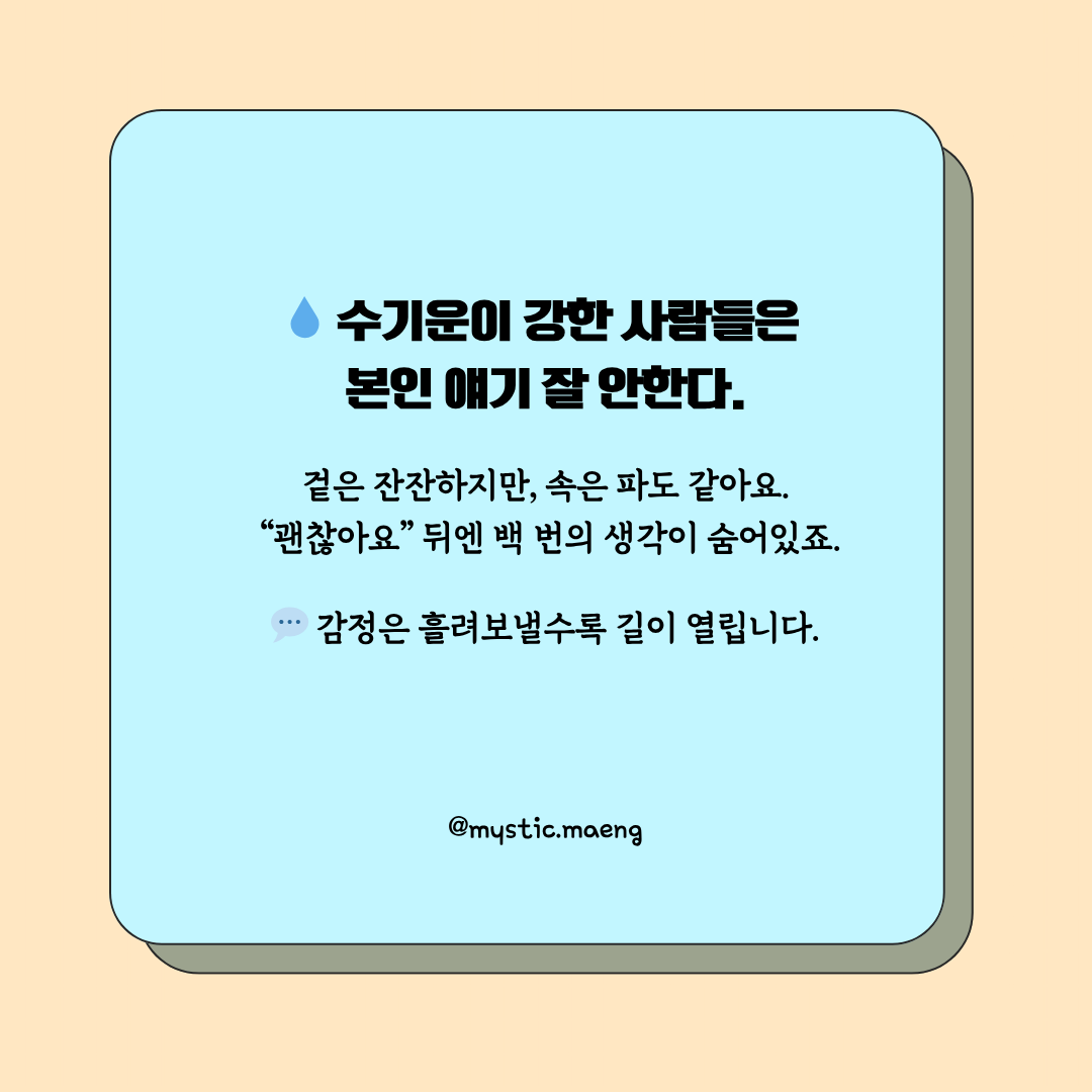 수기운이 많은 사람일수록 감정이 깊고, 표현은 느립니다.