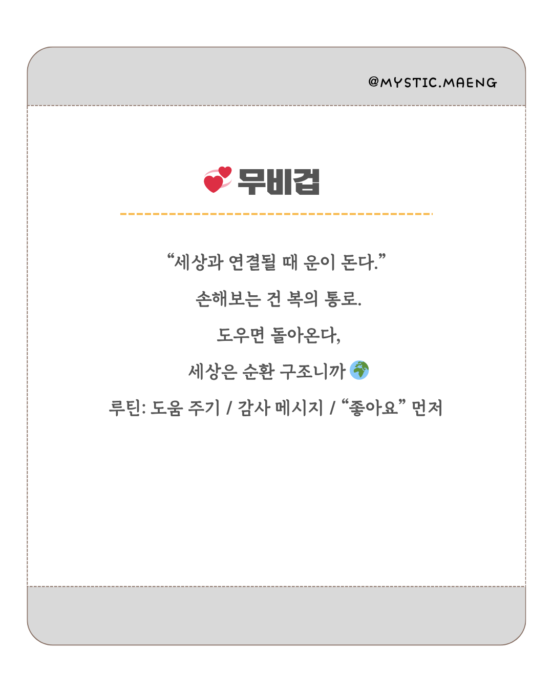 내가 도울 때 복이 돌고, 남의 성공을 기뻐할 때 내 운도 커집니다.