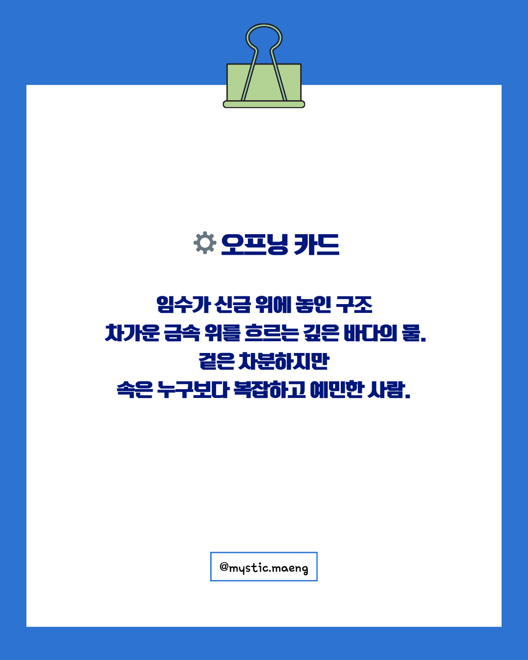 겉으론 냉정하고 차분해 보이지만 속은 복잡하고 깊어요.