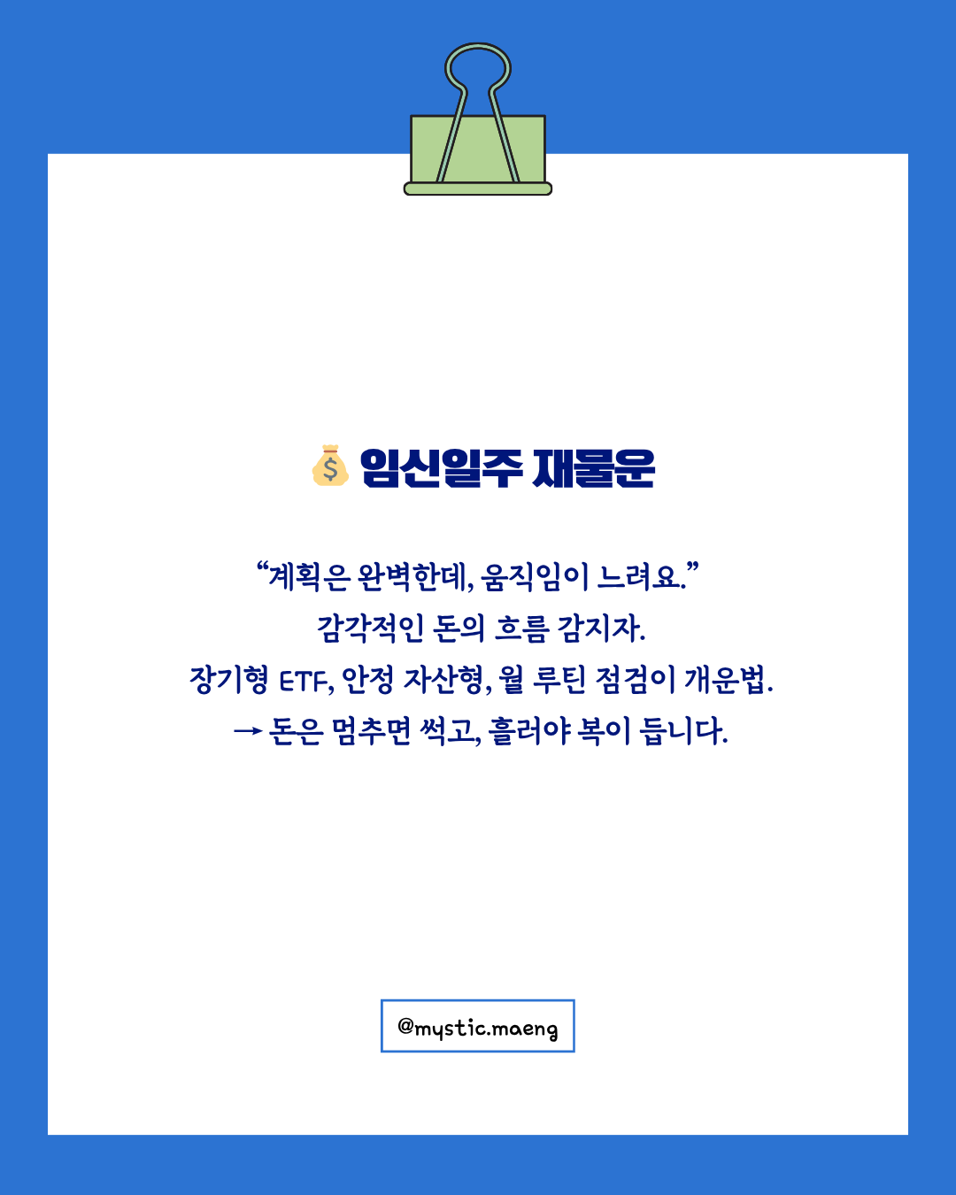 💬 “돈은 물처럼 흘러야 새로 채워집니다.